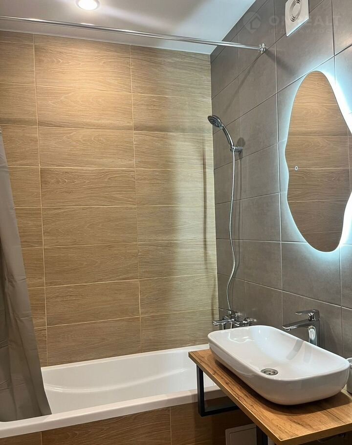 В ванной 3.8м2 новая стиральная машинка ,электрический полотенцесушитель зеркало с подсветкой и шкаф для хранения и ванна 170см.