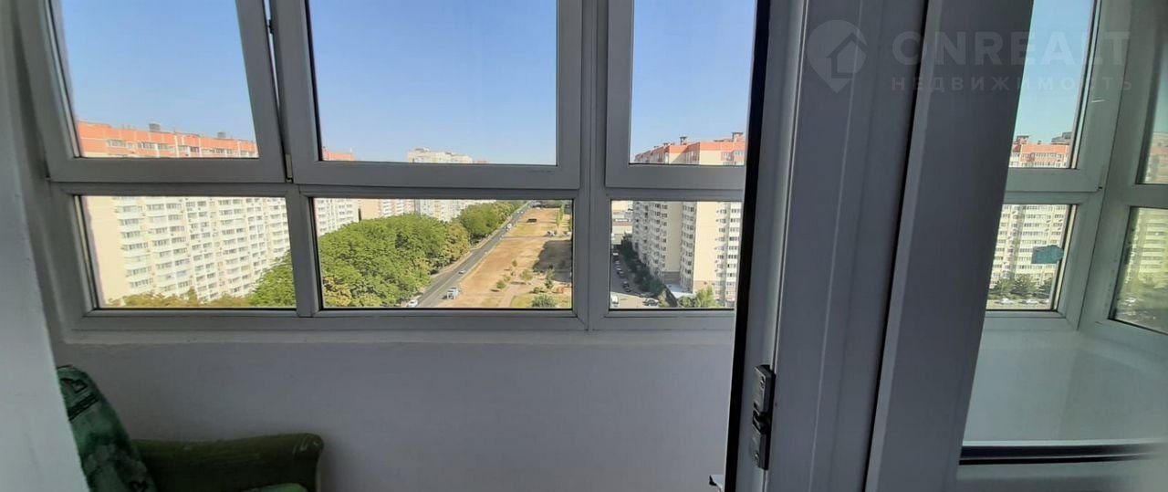 Большая лоджия с панорамными окнами, которые смотрят в простор, что в Краснодаре редкость.