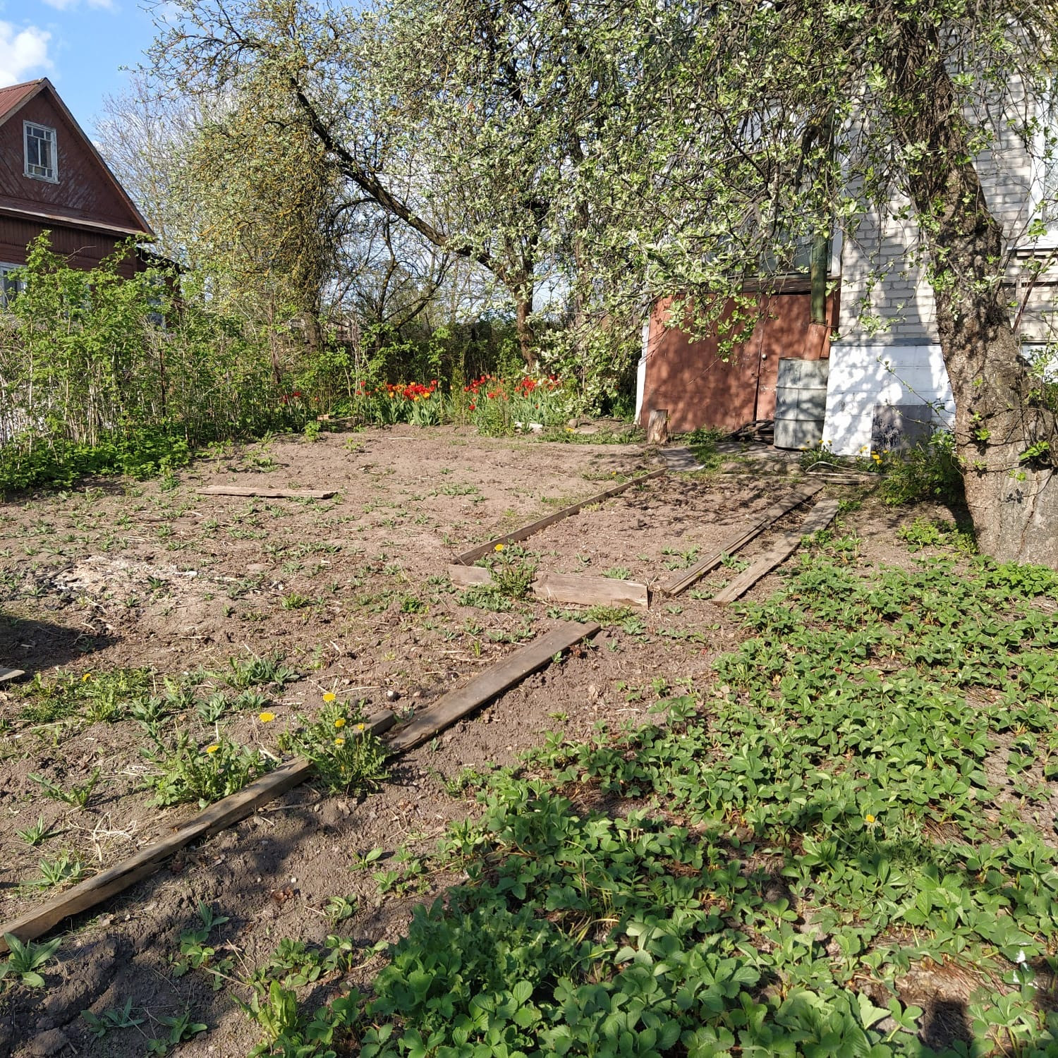 На участке перед домом уже посажены плодовые деревья и кустарники,очень много малины, что придает ему особый шарм и уют. Здесь будет приятно проводить время после трудного дня, наслаждаясь тишиной и покоем.