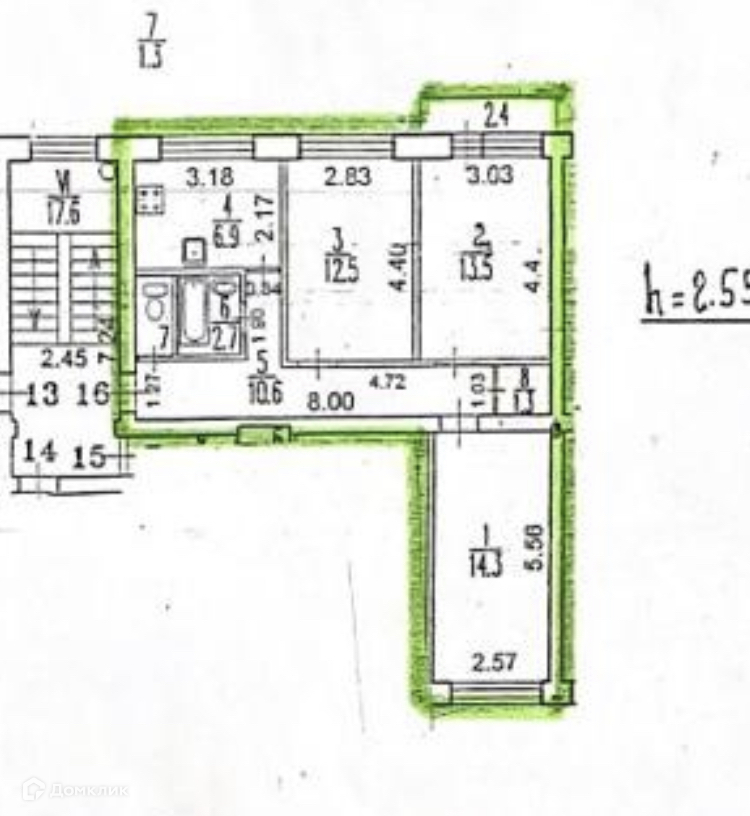 Высота потолков 2.55 м
