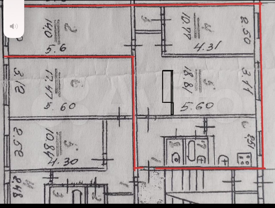 Жилая площадь 43.6 м2