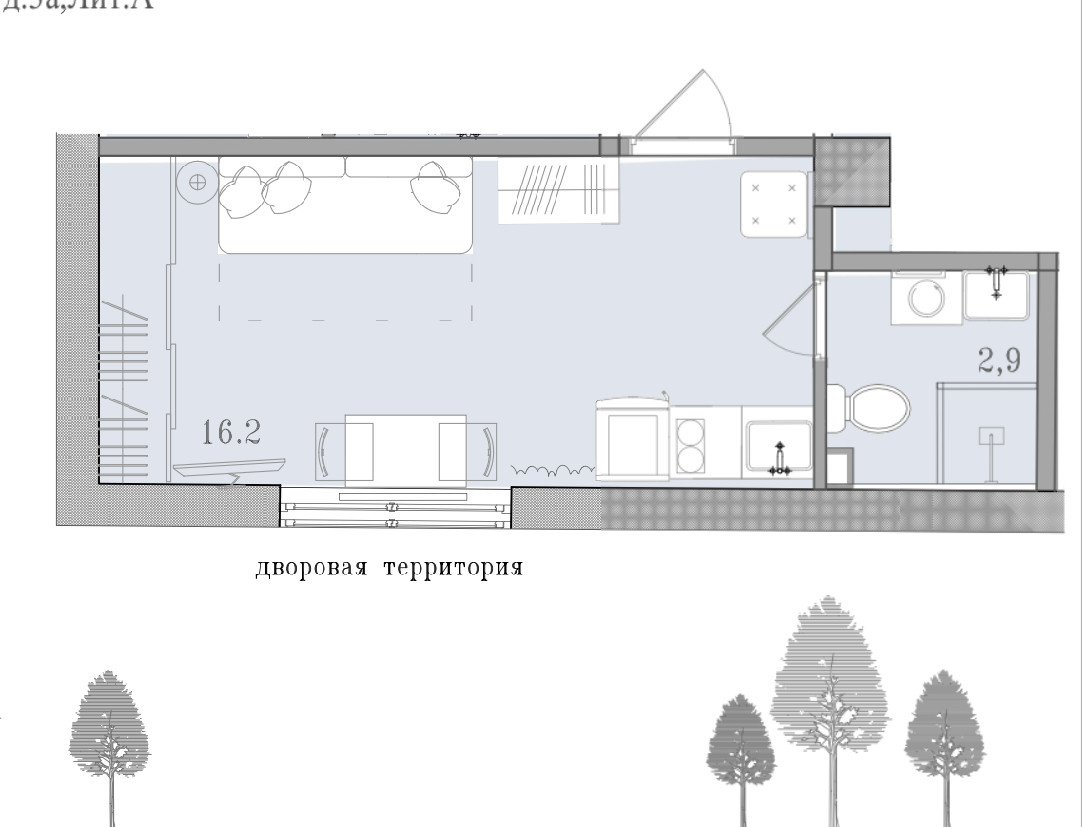 Общая площадь 18.7 м2