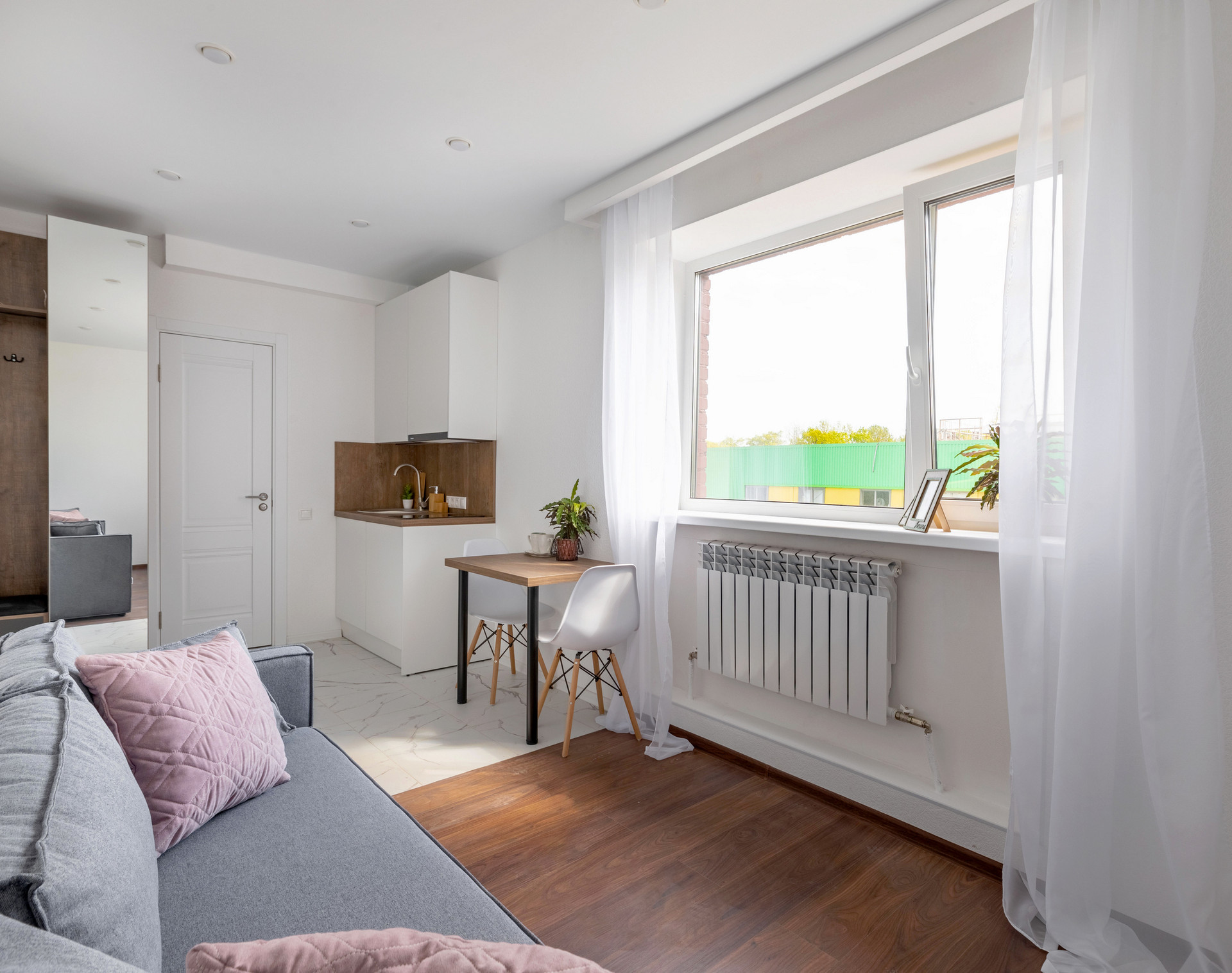 Данная студия очень солнечная за счет большого окна. Есть ниша под систему гранения и просторный санузел!