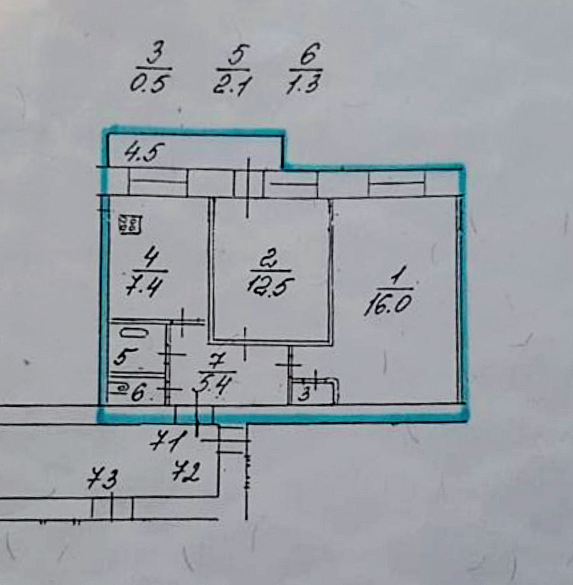 Общая площадь 45.2 м2