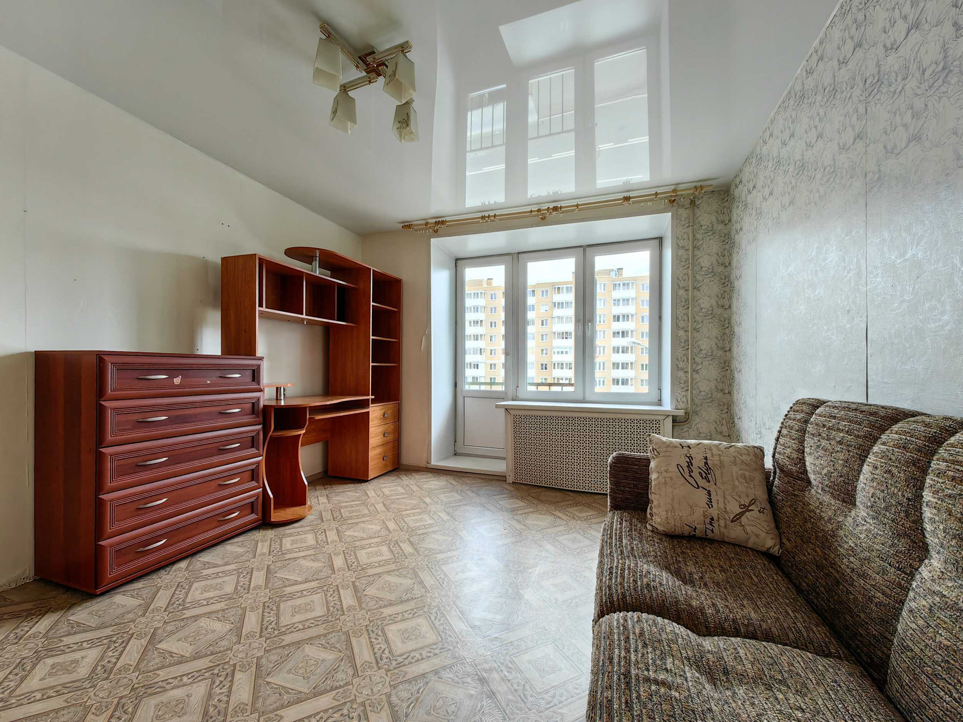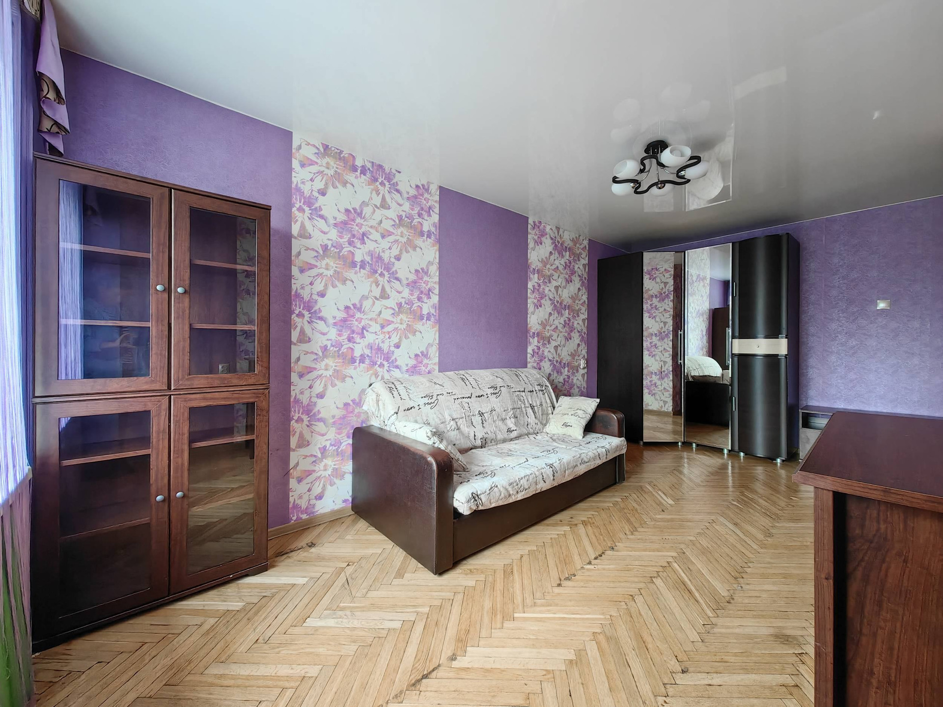 Очень светлая за счет больших окон и открытого вида из окна, по утрам в квартире очень солнечно.