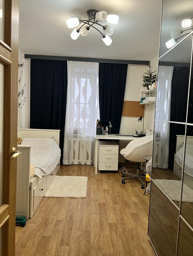Отличная  квартира для большой семьи.  Четыре комнаты ( объединение 3х и 1 к кв), перепланировка УЗАКОНЕНА.