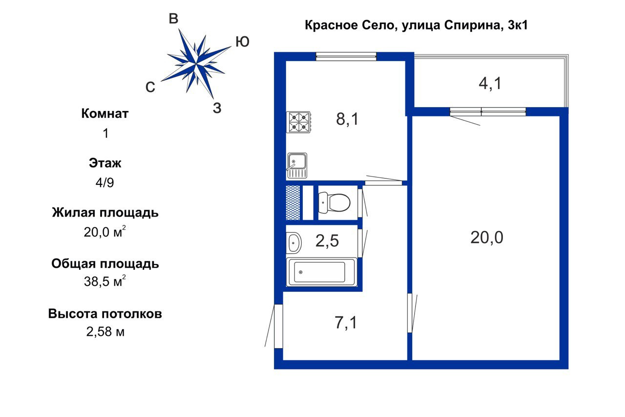 ПРОСТОРНАЯ КОМНАТА - 20м²