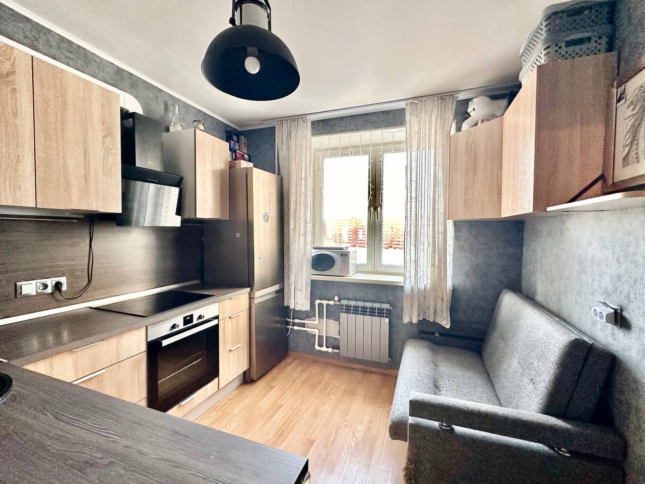 Продается просторная, светлая 1-х комнатная квартира 42.6м² (38.5.м² + лоджия 4.1м² ) с ремонтом и кухонным гарнитуром. Вместе с мебелью и бытовой техникой!!! Холодильник Ariston, cтиральная машина Haier, сушильная машина Bosh, варочная поверхность, духовой шкаф, микроволновка, вытяжка, ТВ на кухне, тостер, чайник. Все что нужно для жизни! Заезжай и живи!