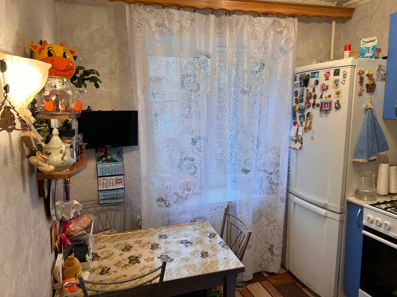 - Сделан свежий косметический ремонт на кухне и в комнате;