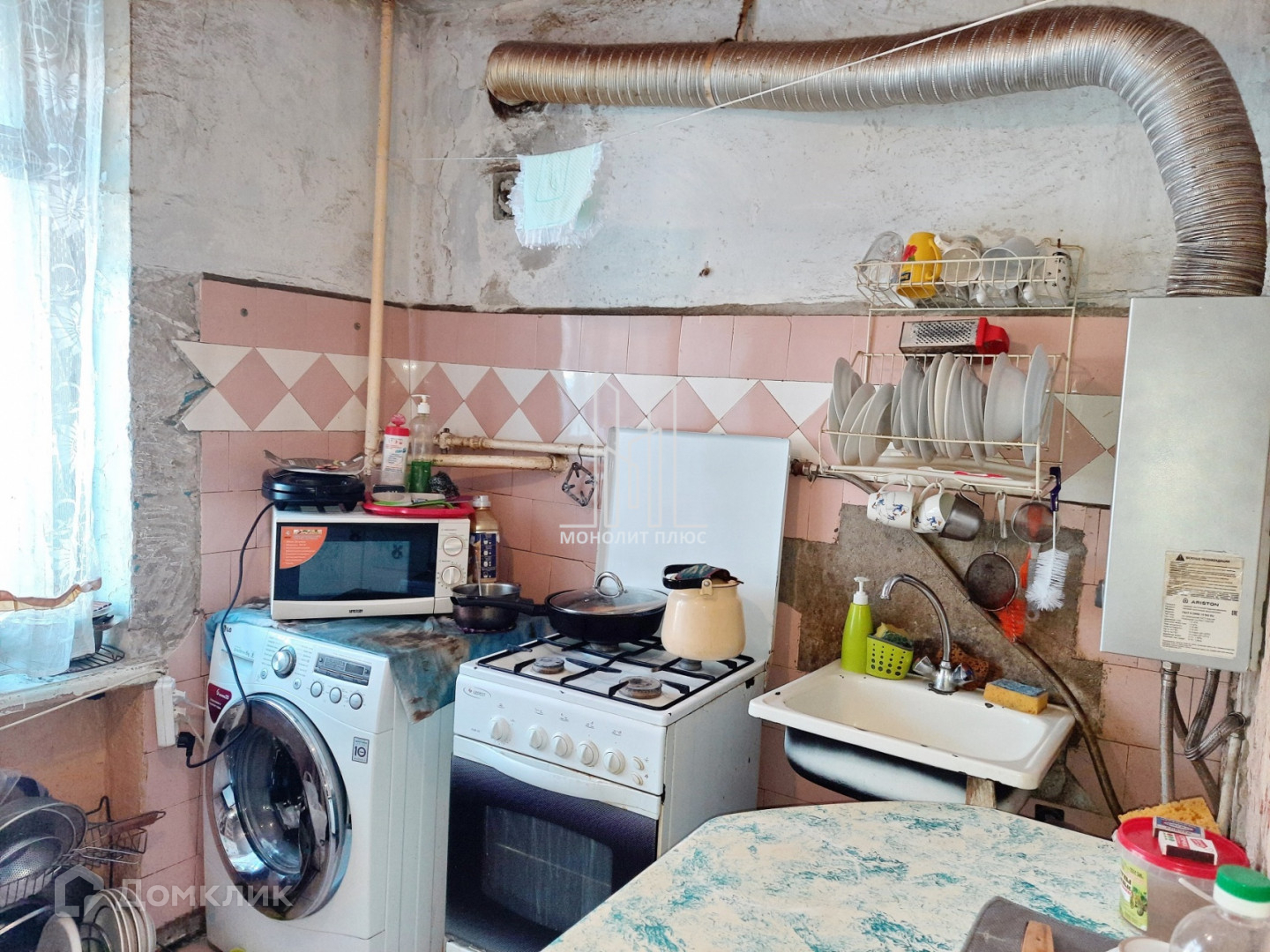 Стиральная машинка на кухне.