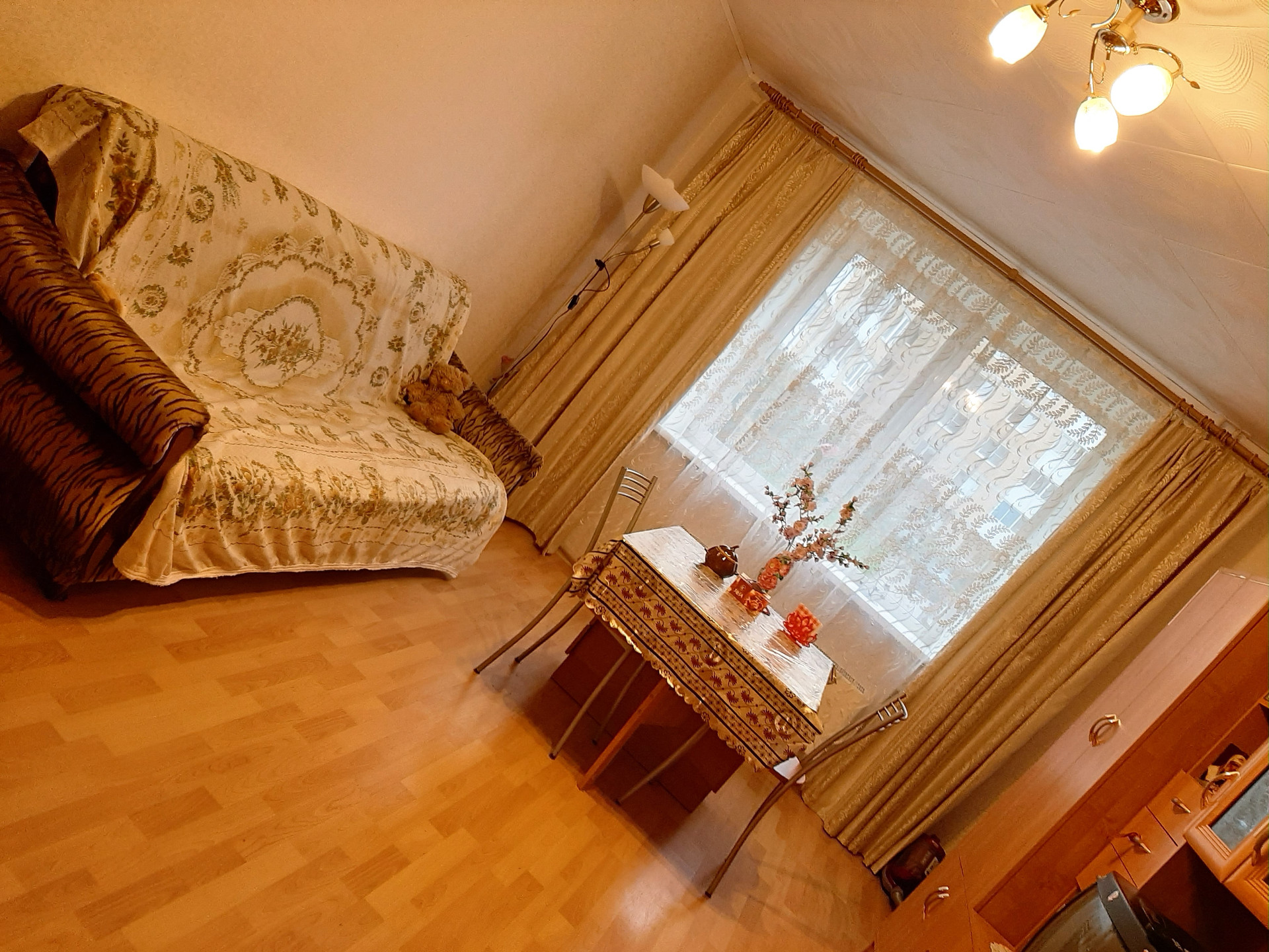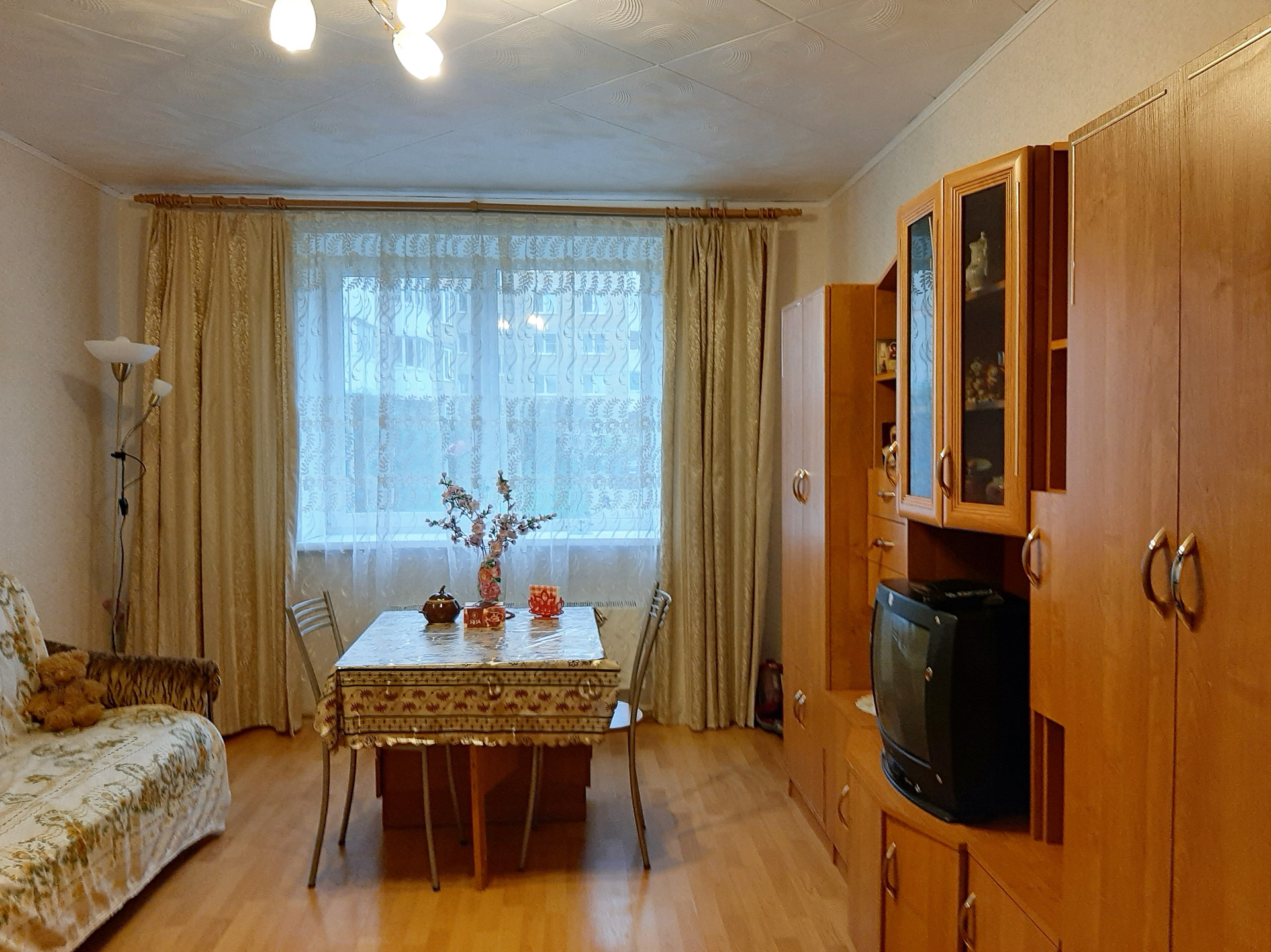 9 000 рублей.  Без хозяйки.  Мало населенная.  Первая комната закрыта, никто не живет.  Во второй комнате проживает 1 женщина.   Третья комната , 19 метров, сдается.    Комната в отличном состоянии.  С хорошим качественным ремонтом.  С современная мебель.  Новый удобный диван.  Стенка-горка. Стол. Стулья.  Вся необходимая бытовая техника.  Холодильник. Стиральная машина. ТВ.  Проведен интернет.   Посуда. Заезжай - и живи.          1 этаж. Комната теплая.