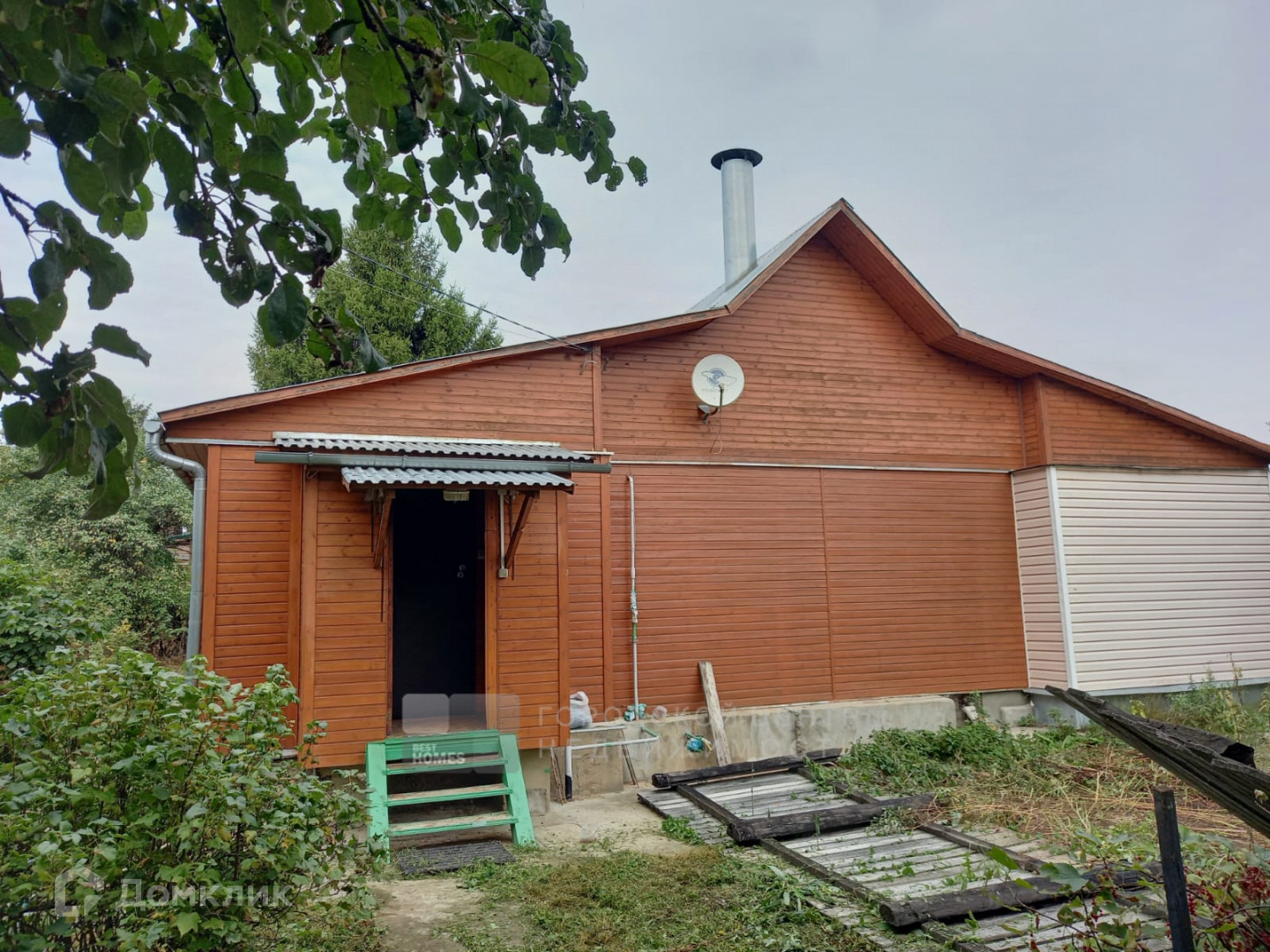 Домик небольшой, зарегистрирован, на ленточном фундаменте, частично из бруса, облицован вагонкой, частично- из кирпича, облицован сайдингом.  В доме прихожая, кухня-гостиная, две комнаты. Дом требует ремонта, либо под снос с сохранением коммуникаций и постройки своего дома, со второго этажа которого откроется панорамный вид на реку.