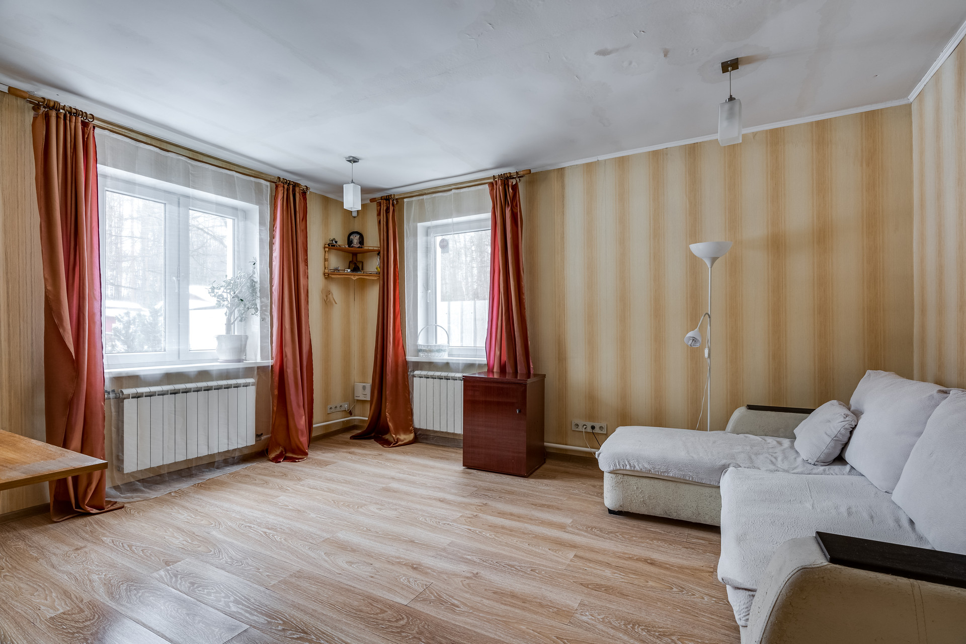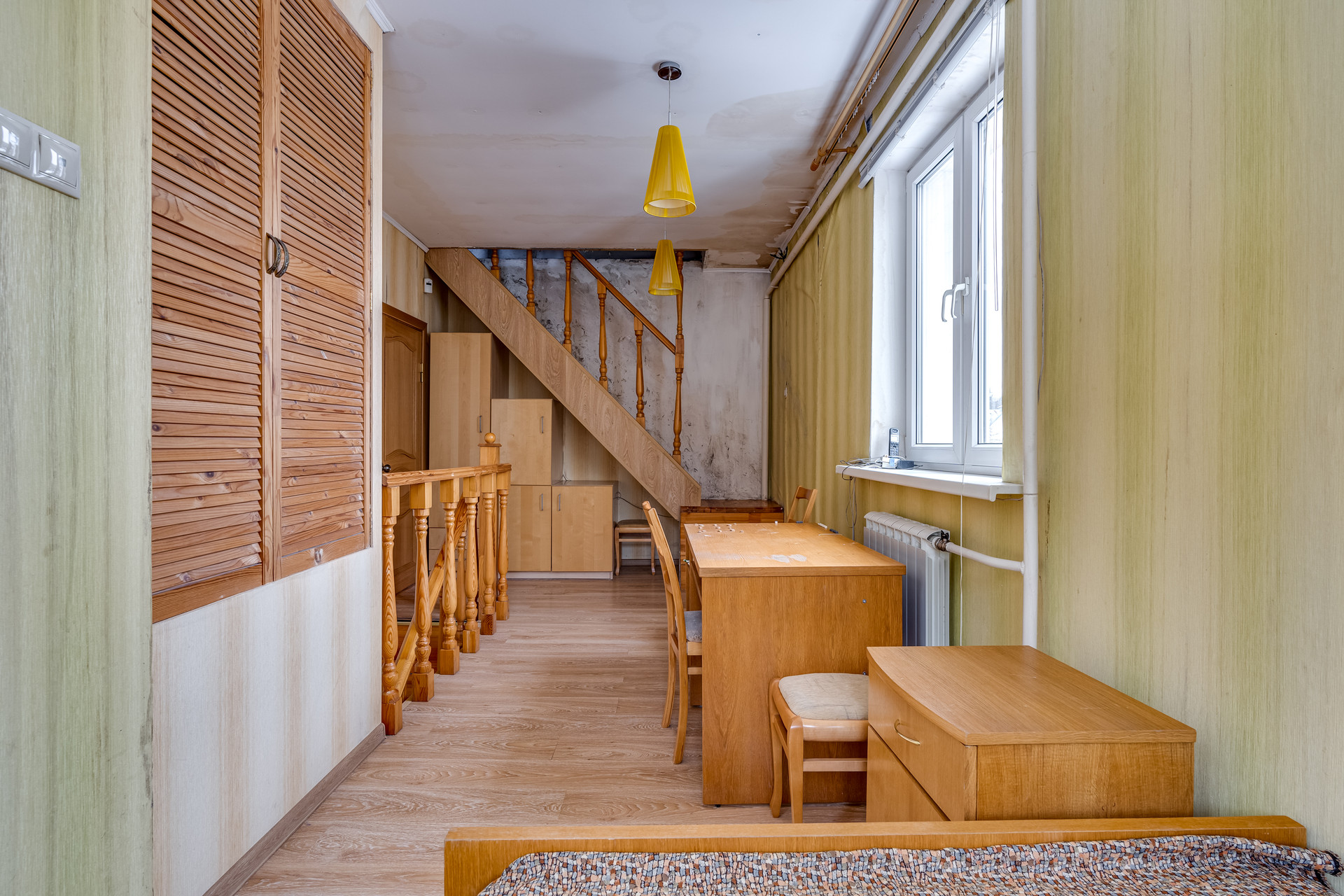 Большая комната и проходная спальня на втором, теплый жилой чердак. Встроенные шкафы для белья и одежды.