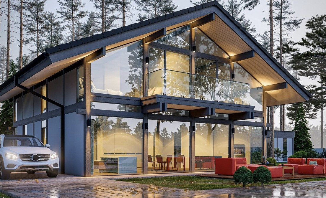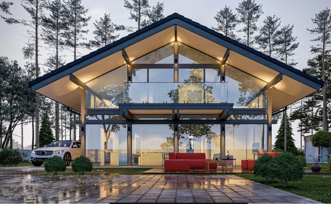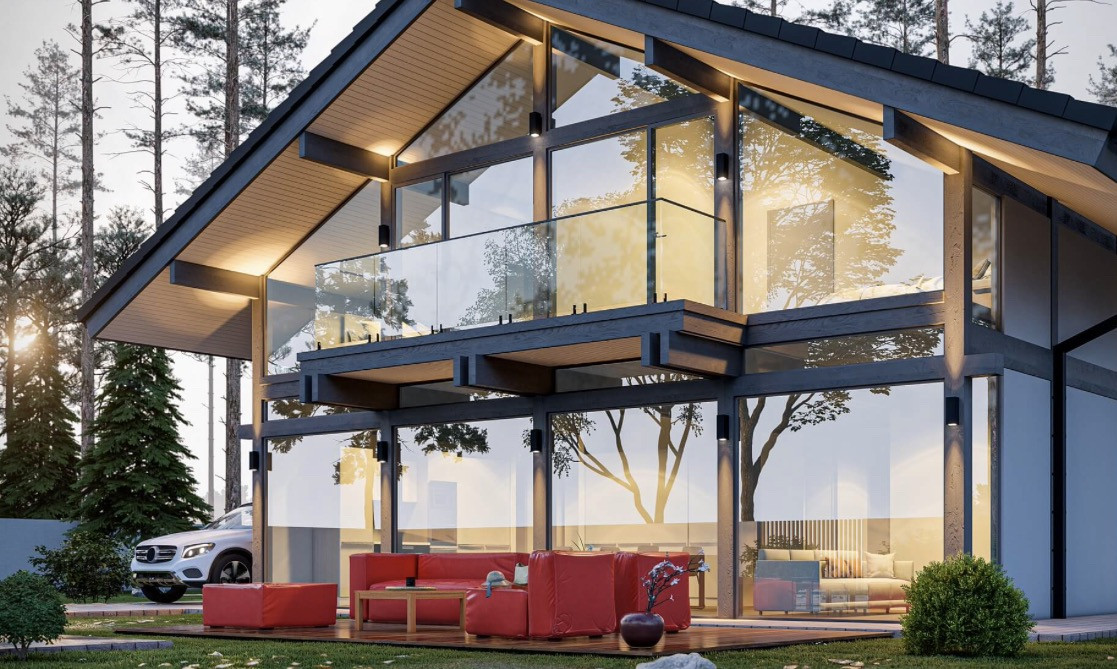 Энергоэффективный дом по немецкой технологии fachwerk площадью 240м2 с панорамным остеклением от застройщика.