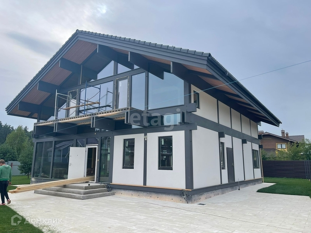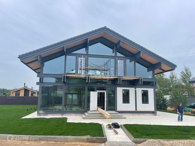 Энергоэффективный дом с патио и крытыми верандами от застройщика по немецкой технологии fachwerk площадью 375м2 с возможностью увеличения площади за счёт эксплуатируемой кровли, с панорамным остеклением.