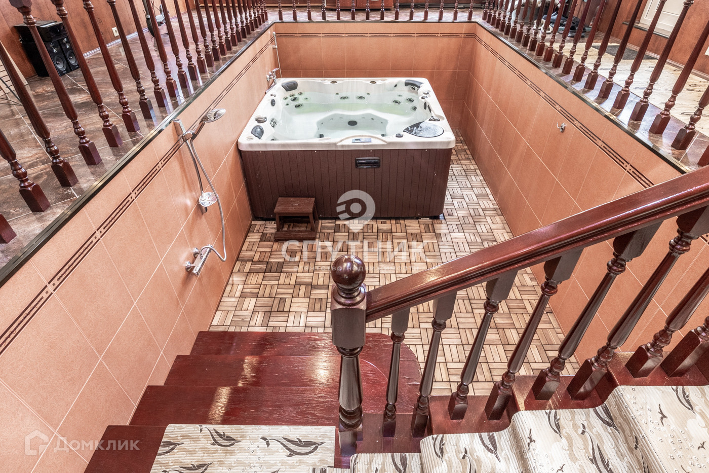 Дом построен по современной энергосберегающей технологии Изодом 2000. Наружная отделка -   терралитом (байрамиксом). Во внутренней отделке использованы натуральные материалы: дерево, камень. Планировка дома продумана до мелочей, грамотное зонирование позволяет с комфортом разместиться большой семье. В доме расположено множество мастер-спален с личными гардеробными, сан.узлами, выходами на балконы. Прекрасный каминный зал на первом этаже с высотой потолков 9 метров и  большой зал на втором этаже. Так же предусмотрены две кухни на первом и втором этажах. Большой тренажерный зал с бассейном не оставит равнодушными людей, любящих спорт.  В цокольный этаж ведет лифт, там разместились хозяйственные помещения, места хранения, и т.д. Все помещения дома имеют индивидуально регулируемые теплые полы и кондиционеры. Установлена многоступенчатая система водоочистки, система видеонаблюдения  и сигнализации.