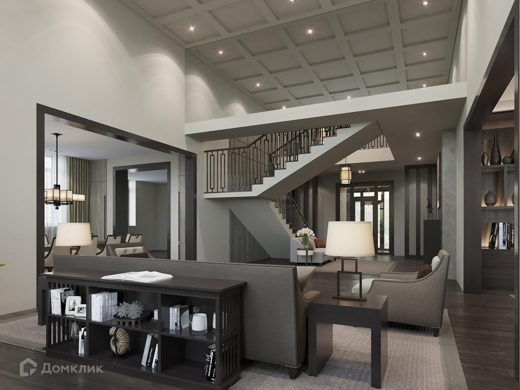 Стильный дом площадью 500 м2 с отделкой «под ключ» в стиле Райта, оборудованный эксклюзивной сантехникой и современной бытовой техникой.