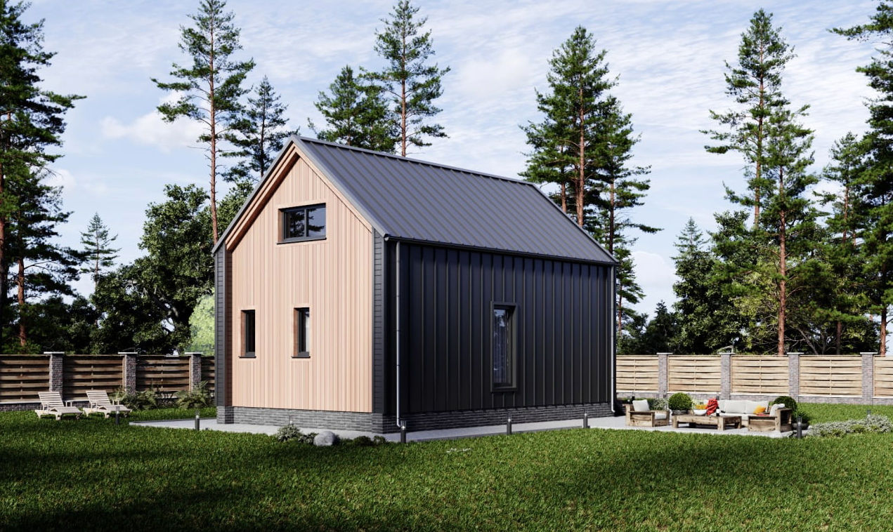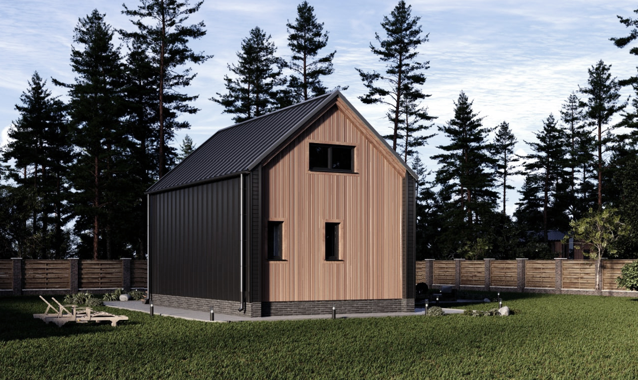Подшивка свесов кровли: Пластиковые софиты. Свесы крыши - 500 мм от края наружной стойки.
