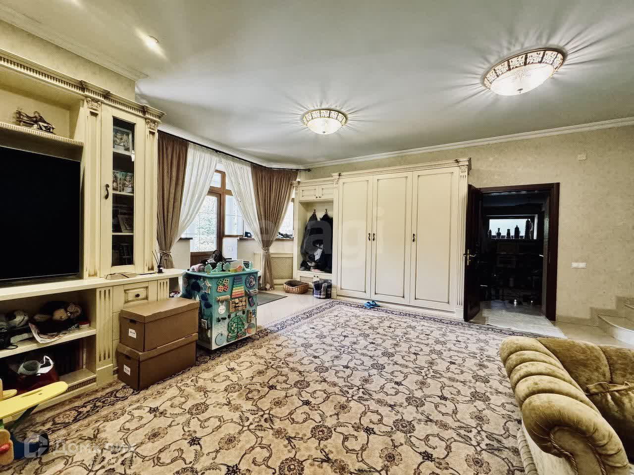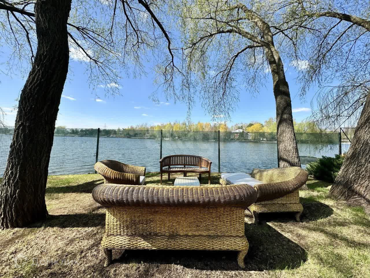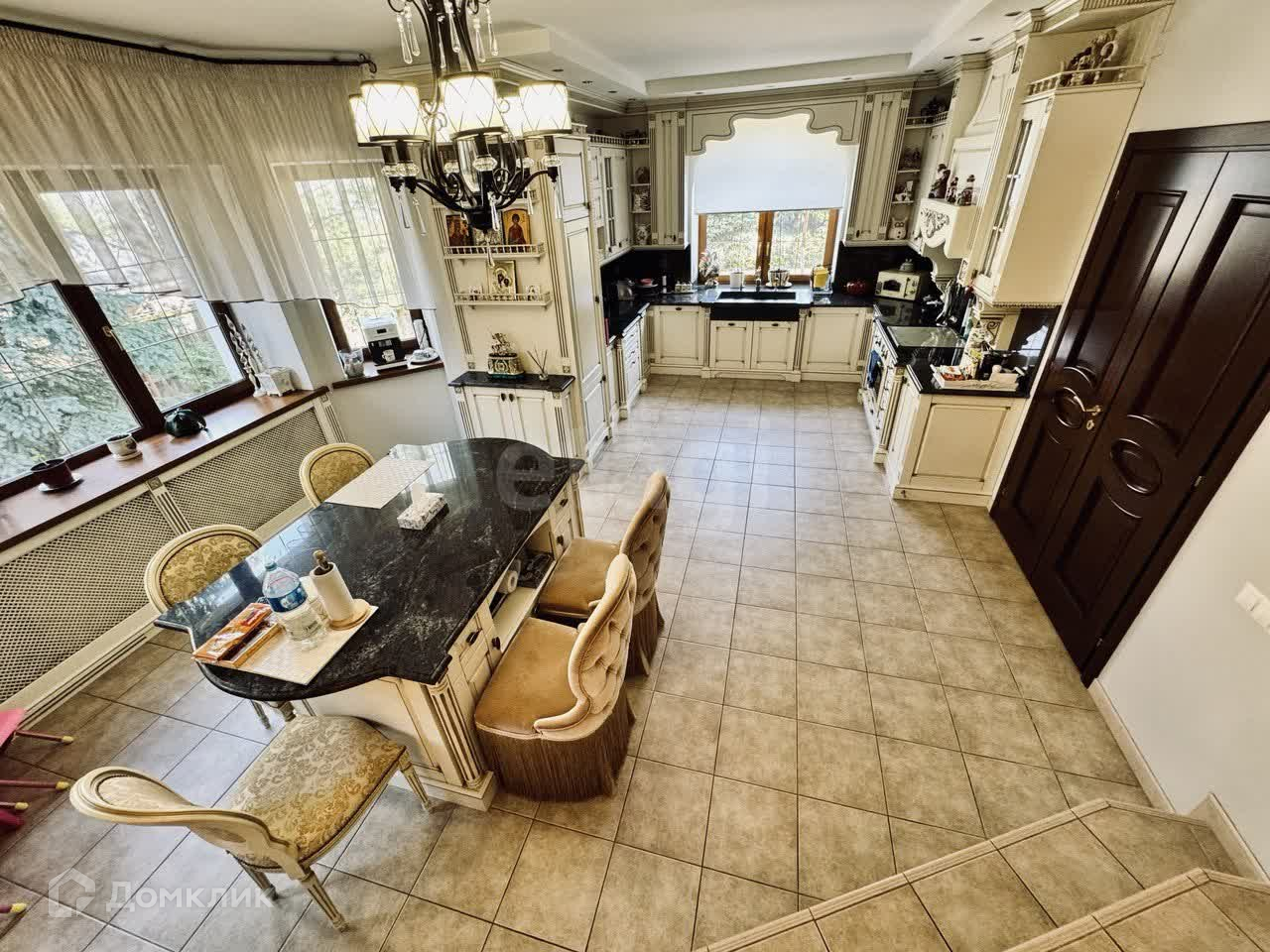 Кирпичный дом 2003 года постройки, ж/б перекрытия, крыша металлочерепица, толщина кладки кирпича 75 см., общая площадью 760 кв. м, теплый гараж, комфортное помещение для персонала (с отдельной кухней и с/у), летняя беседка с видом на воду и мангальной зоной. Дом состоит из 6-ти комнат, несколько кухонь (техническая и основная), гардеробные комнаты и места для хранения вещей, вспомогательные помещения (котельная, постирочная).