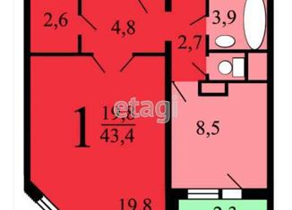 Жилая: 43.8 м2