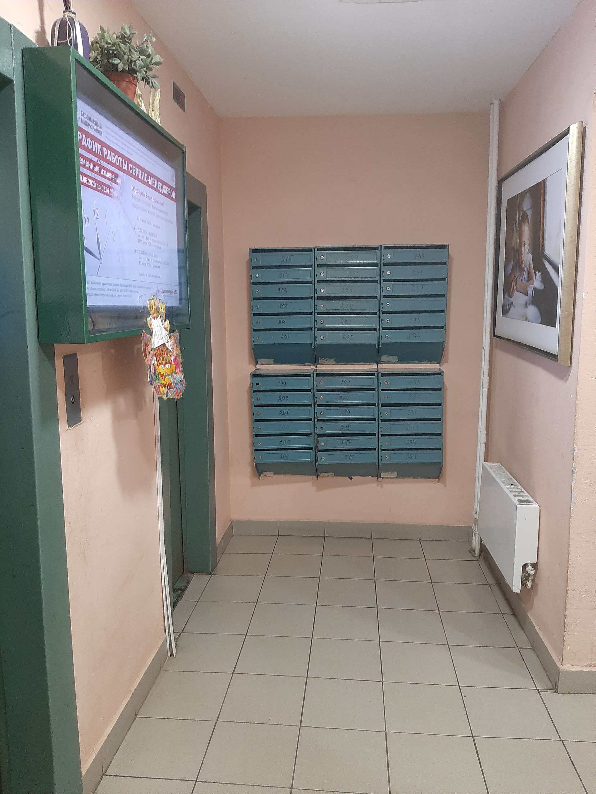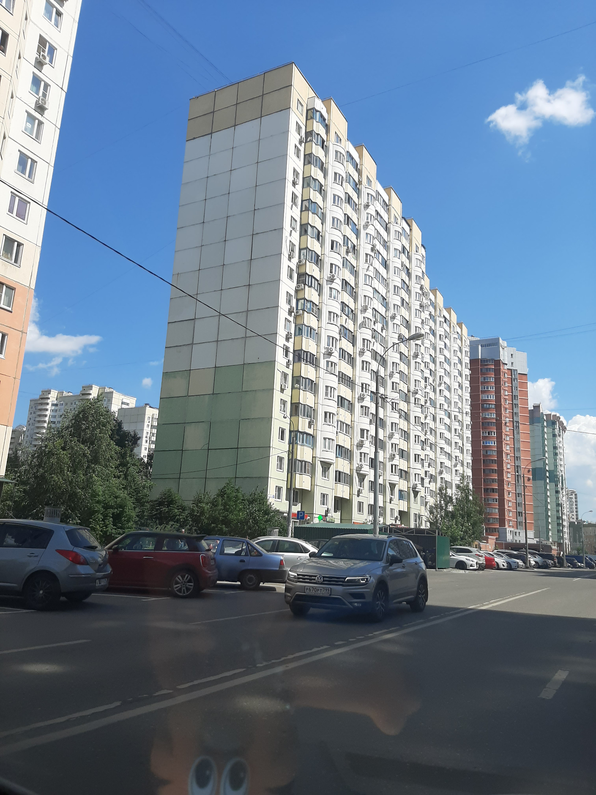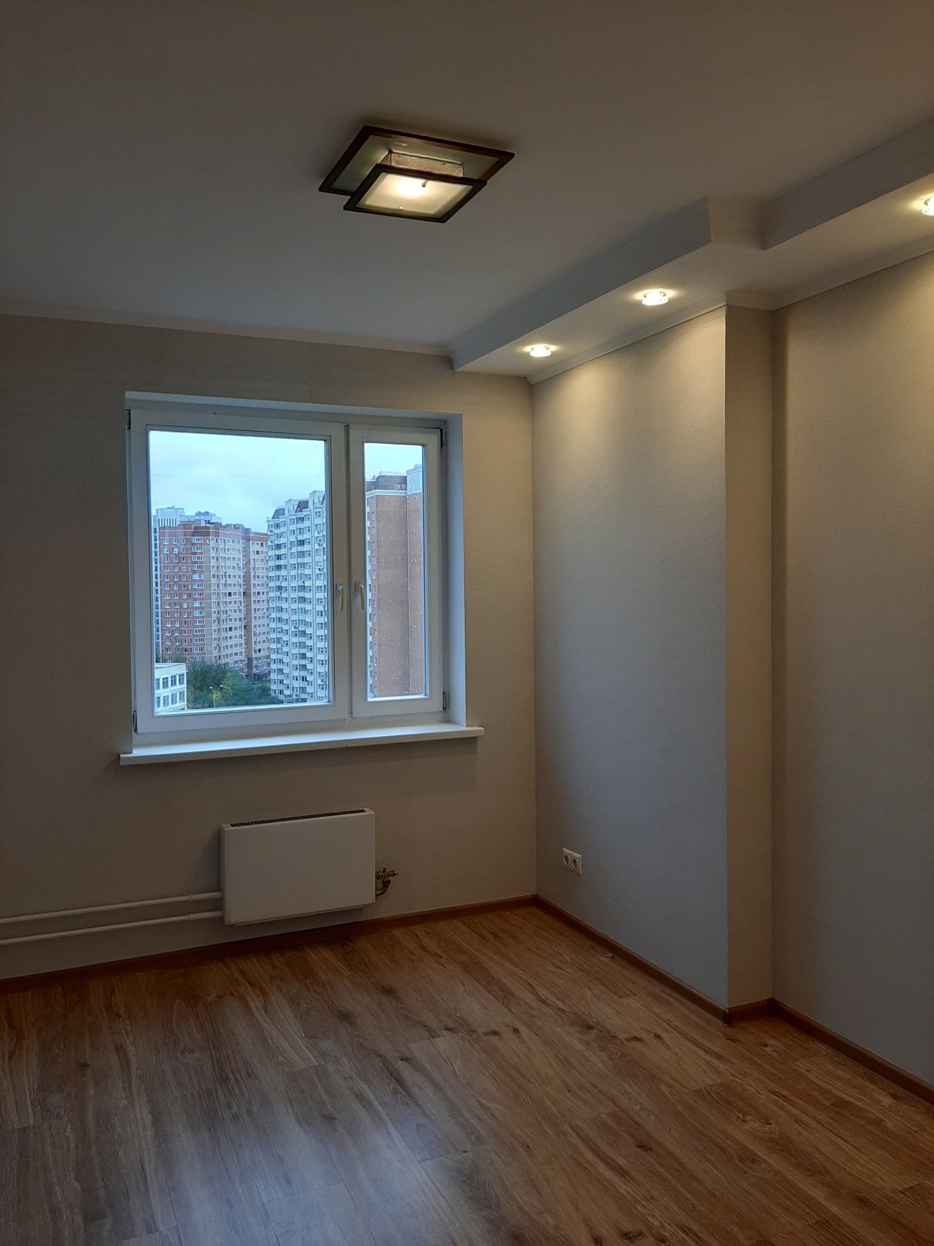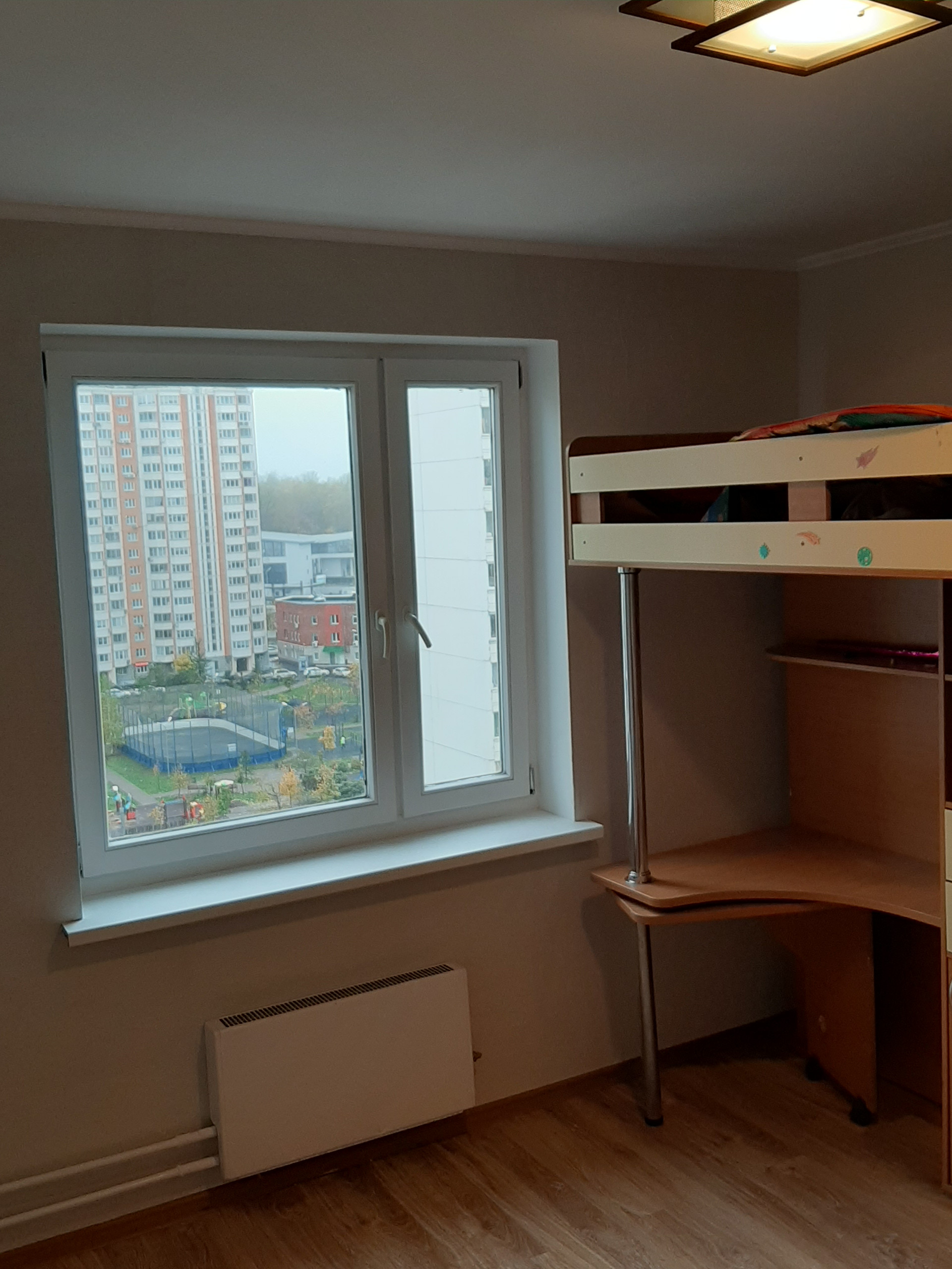 В квартире 4 окна, выходят на две стороны: одно, из комнаты - на тихую улицу, три окна - во двор. Во дворе детский сад, школа, красивый вид, тихо, уютно, много зелени. Развитая инфраструктура. Первые этажи нежилые (кафе, магазины и т.д.). Много сетевых продуктовых и других магазинов, отделения банков и всего, что необходимо. До остановки МЦД-2 Пенягино пешком 8-10 минут, до метро Мякинино, ТЦ "Крокус-Сити" - пешком около 15 минут. В подъезде консьерж, грузовой и пассажирский лифты, свежий современный ремонт. На площадке общая металлическая дверь с соседями.