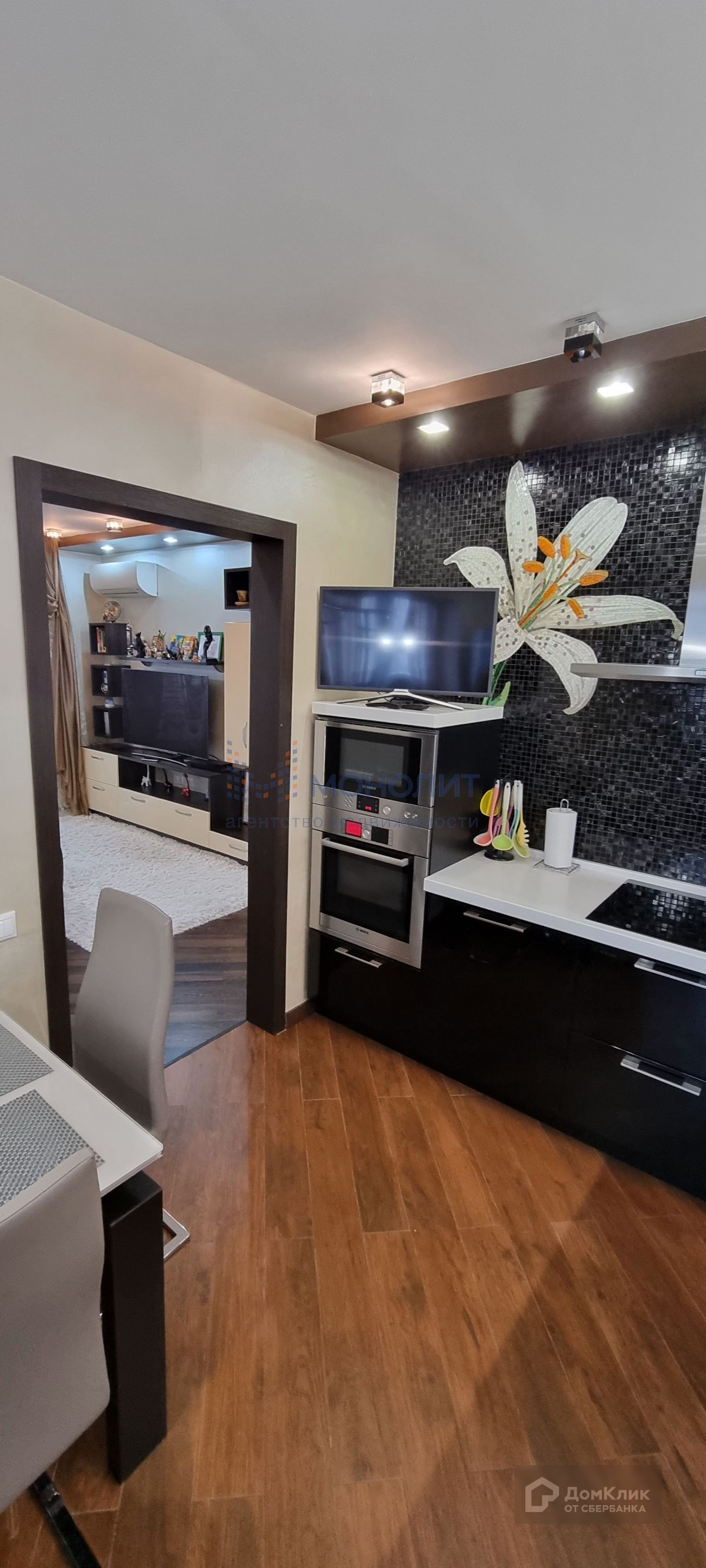 Продается уютная комфортная трехкомнатная квартира в монолитно-кирпичном доме с качественным дизайнерским ремонтом. Все отделочные материалы произведены в Италии, в том числе все межкомнатные двери. Изюминкой квартиры является "фартук" на кухне, орнамент который был изготовлен вручную. В ванной комнате, на кухне и на лоджии-тёплый пол. Стиральная машина Miele, кухня оборудована всем необходимым (духовой шкаф, микроволновая печь, вытяжка, индукционная плита-Bosch, дизайнерский холодильник отделан черным стеклом-Liebherr). В гостиной и на кухне установлены сплит системы (кондиционеры) фирмы Daikin. В квартире имеются полностью оборудованные две гардеробные, на утеплённой лоджии имеются дополнительные места для хранения вещей.