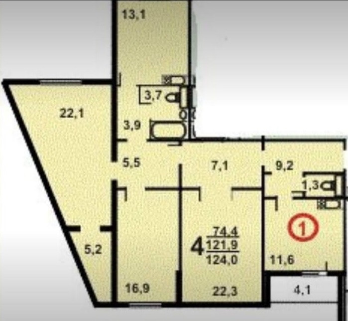 Жилая площадь 74.4 м2