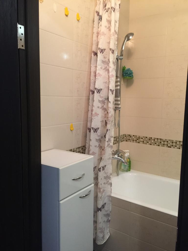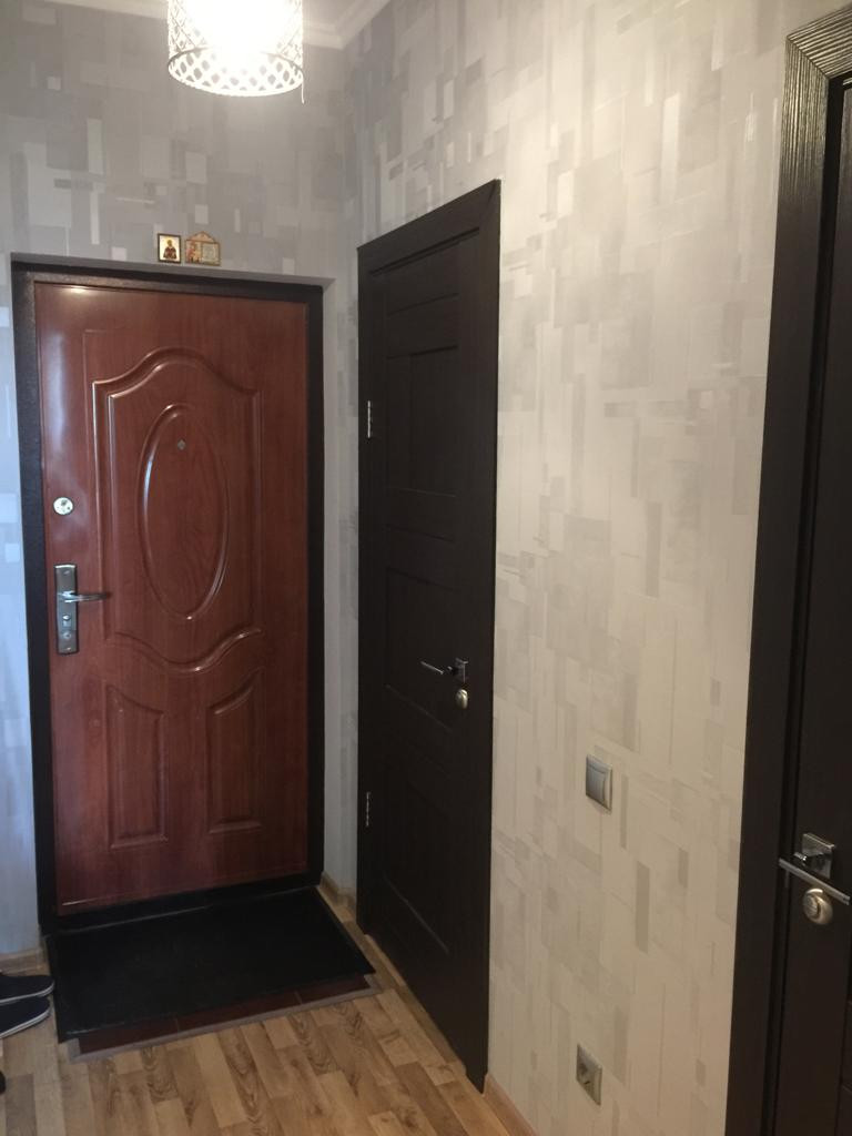 Сделан качественный ремонт для себя. На полу в комнате, кухне, коридоре - ламинат; в ванной, туалете - плитка. В ванной и туалете качественная сантехника. Из мебели и бытовой техники все остается: встроенный гардеробный шкаф в комнате (сделанный по индивидуальному проекту, с раздвижными дверями, зеркалом и полками от потолка до пола), диван, кухонный гарнитур, обеденный стол и стулья. Холодильник, телевизор, стиральная машинка.