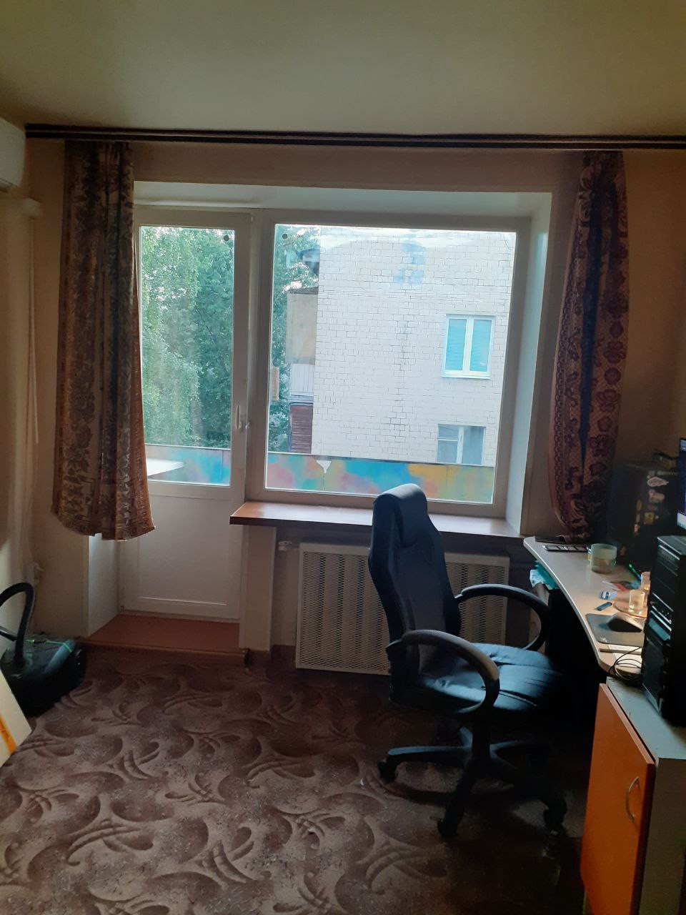 Очень зелёный и тихий двор. Квартира очень теплая, угловая. Соседи только по одной стене...спокойные, тихие. Балкон не остеклен. Есть кондиционер