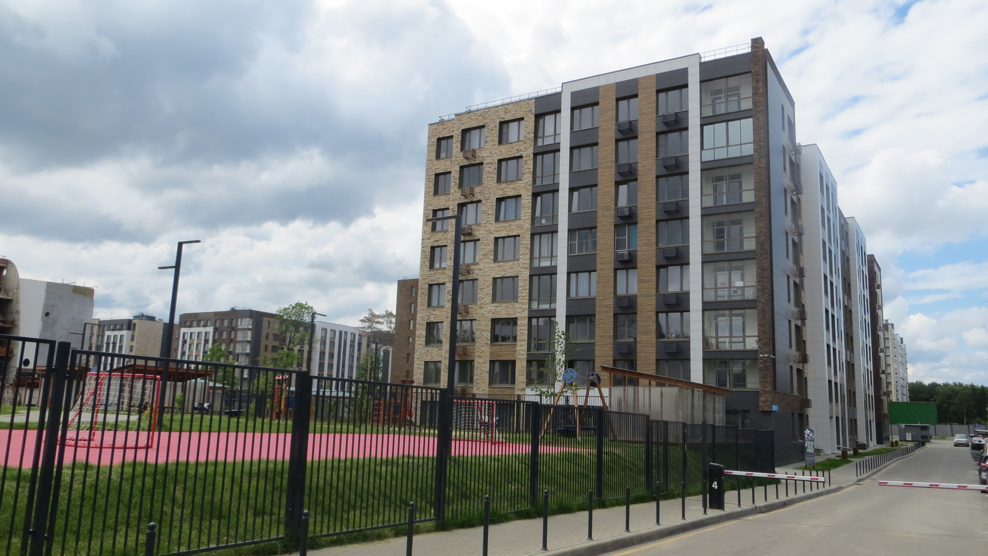 Охрана, видеонаблюдение, огороженная территория комплекса, въезд через шлагбаум. На территории школа и детский сад, строят торгово- гаражный комплекс, на территории работают несколько супер маркетов, открыт Соседский клуб.