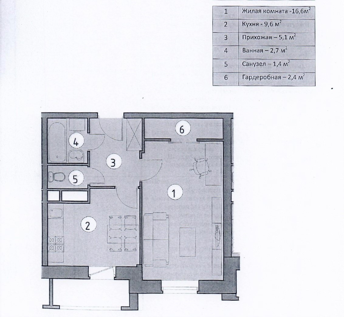 Общая площадь 38.4 м2