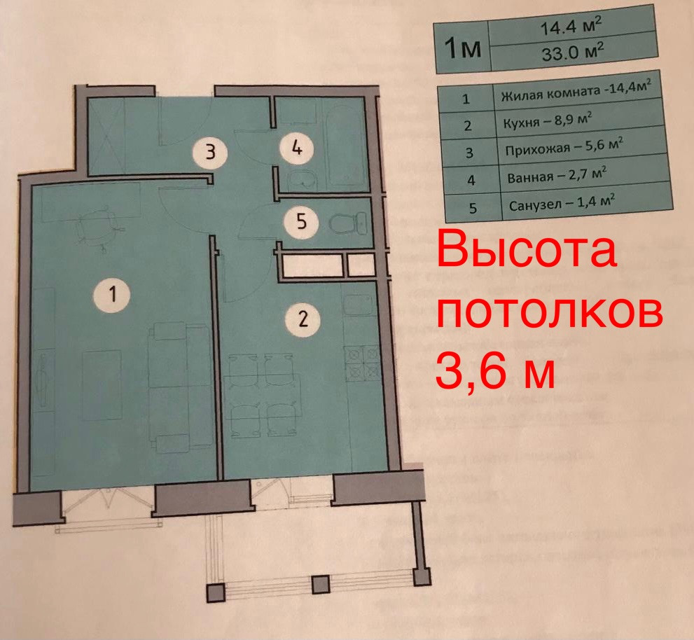 Общая площадь 33 м2