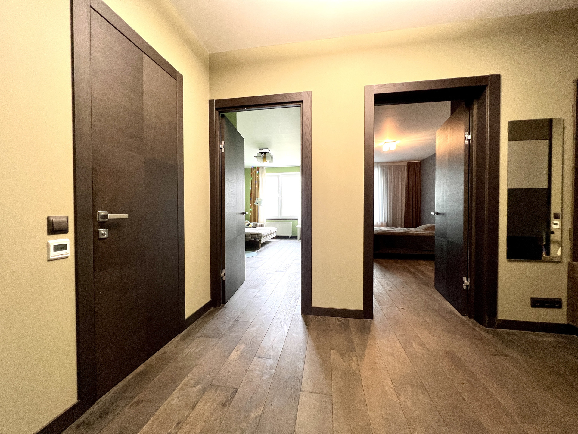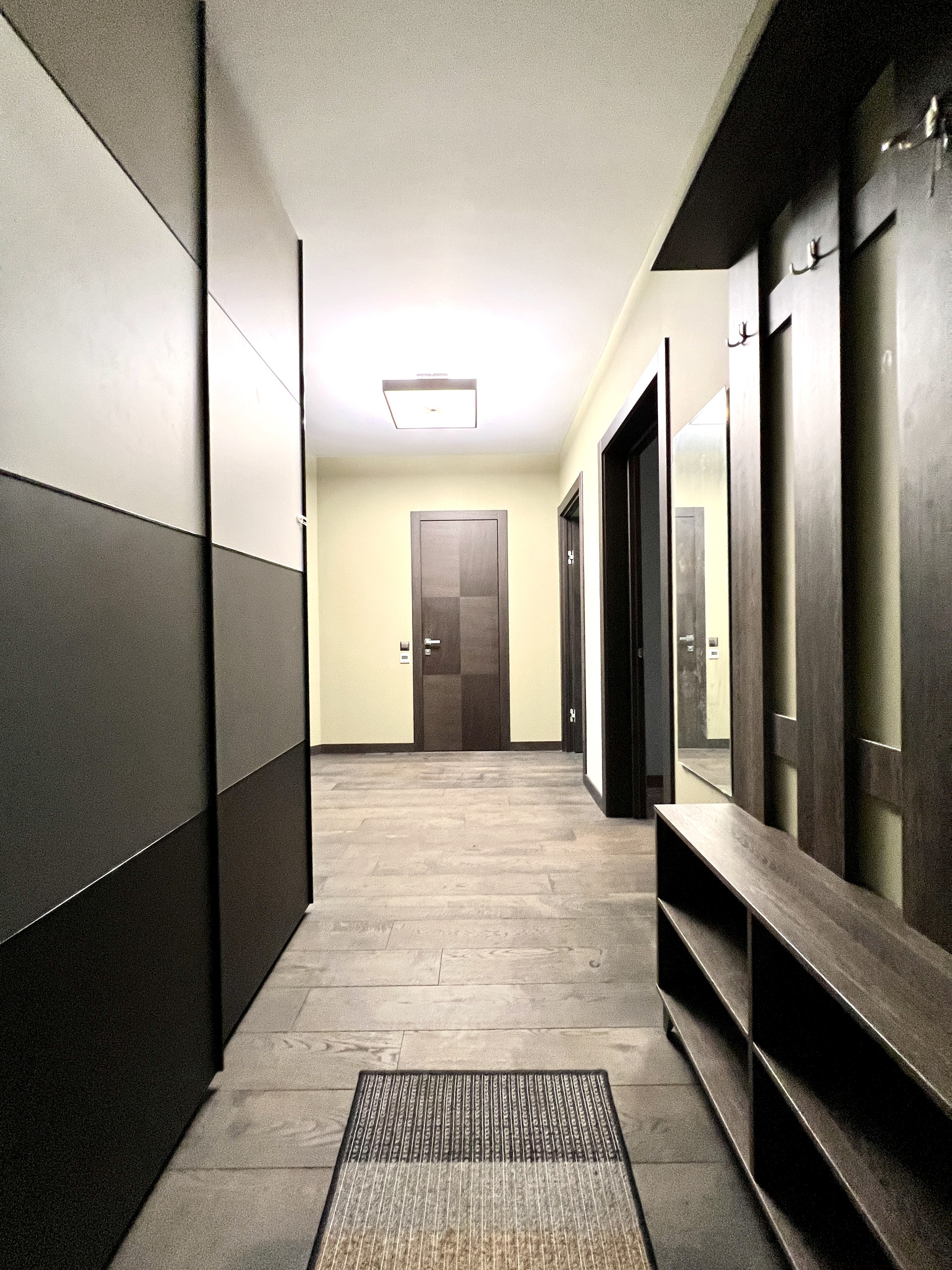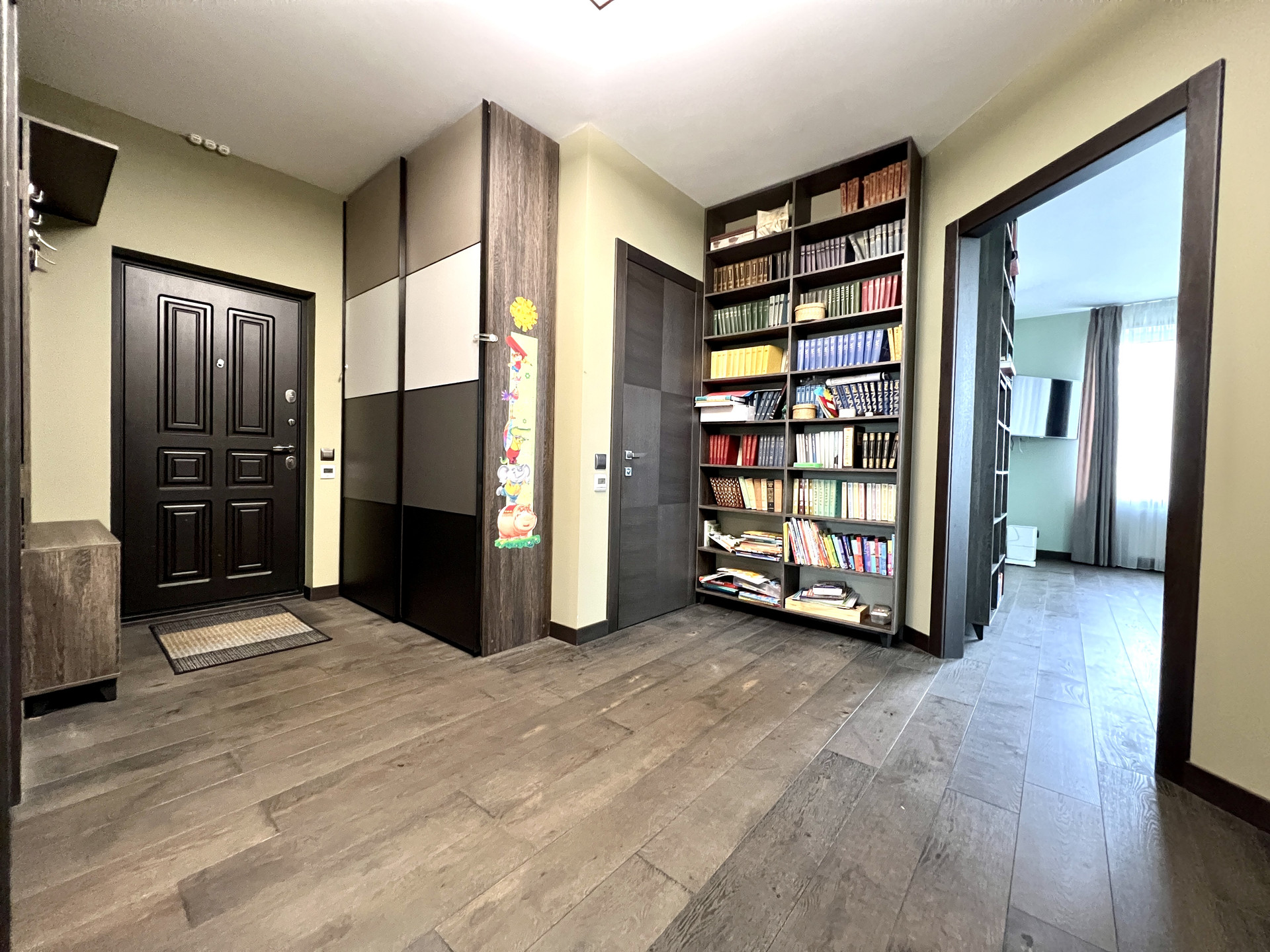 Прихожая 10,9 кв.м. оборудована вместительным гардеробом.