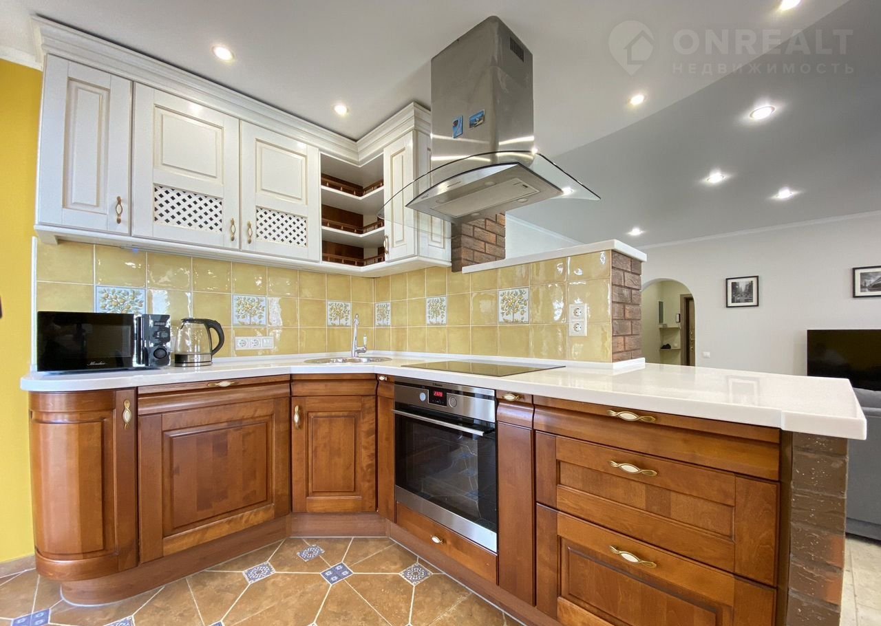 Из техники - два телевизора с большой диагональю, новый двухкамерный холодильник, новая стиральная машинка, встроенная бытовая техника: посудомоечная машинка, варочная панель и духовой шкаф, вытяжка. В наличии микроволновая печь, электрический чайник, новая сушилка для белья.