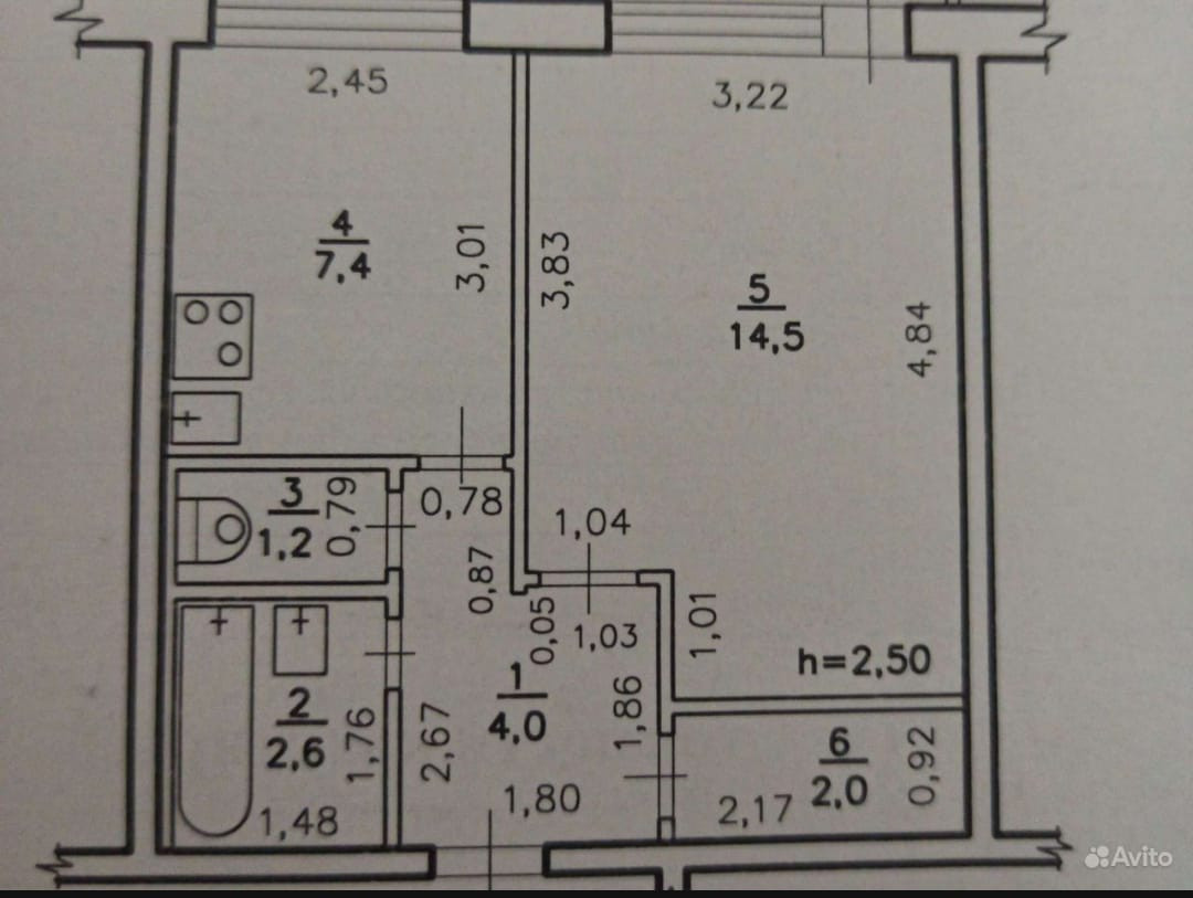 Высота потолков 2.5 м