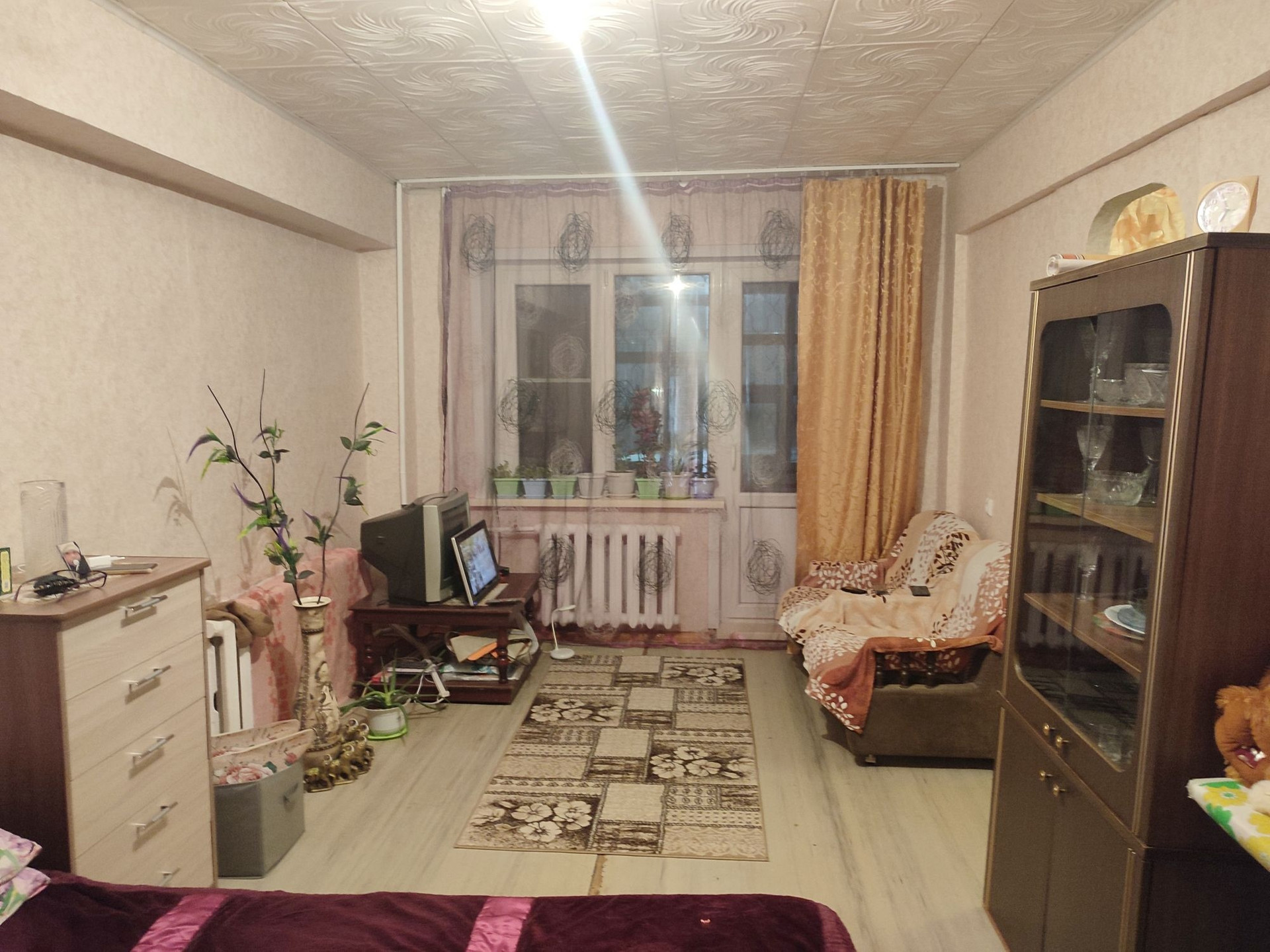 Квартира светлая, окна пластиковые, балкон застеклён.