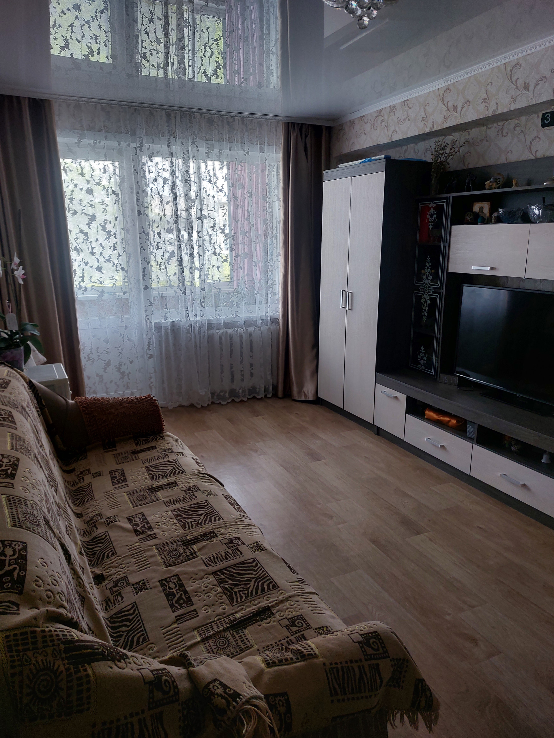 Продам 3х комнатную квартиру на 4эт, 444д, балкон 6м остекление алюминиевый профиль, сантехника заменена, на радиаторах отопления установлены краны перекрытия, натяжные потолки кроме одной спальни, ванна,туалет-кафель, дверь входная новая, тамбур на 3квартиры, (дверь всегда закрыта, где хранятся обувь,вещи)соседи хорошие, остановка рядом с домом,рядом 2 школы,2 детских сада,магазин караван,мебель остаётся.