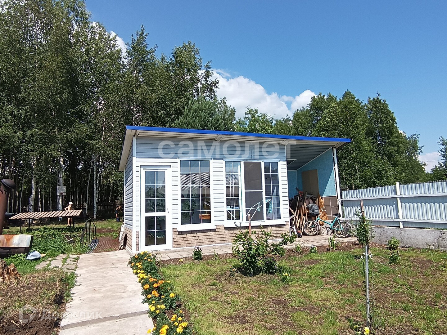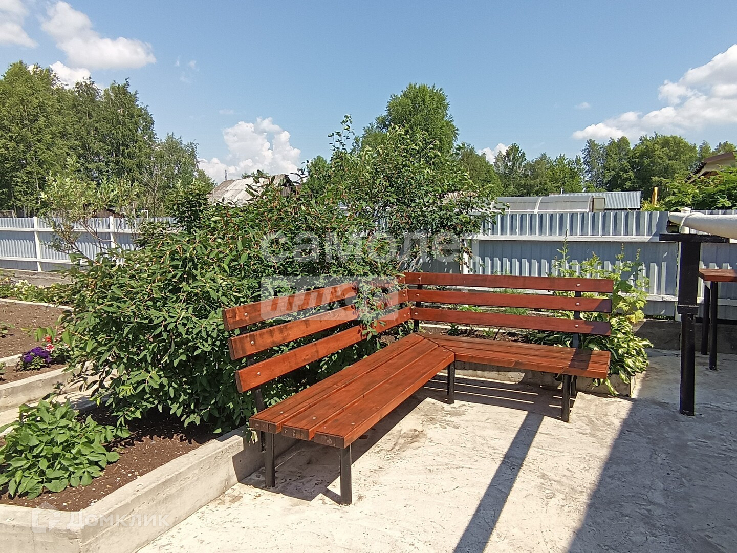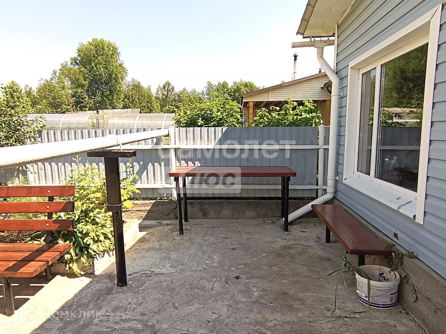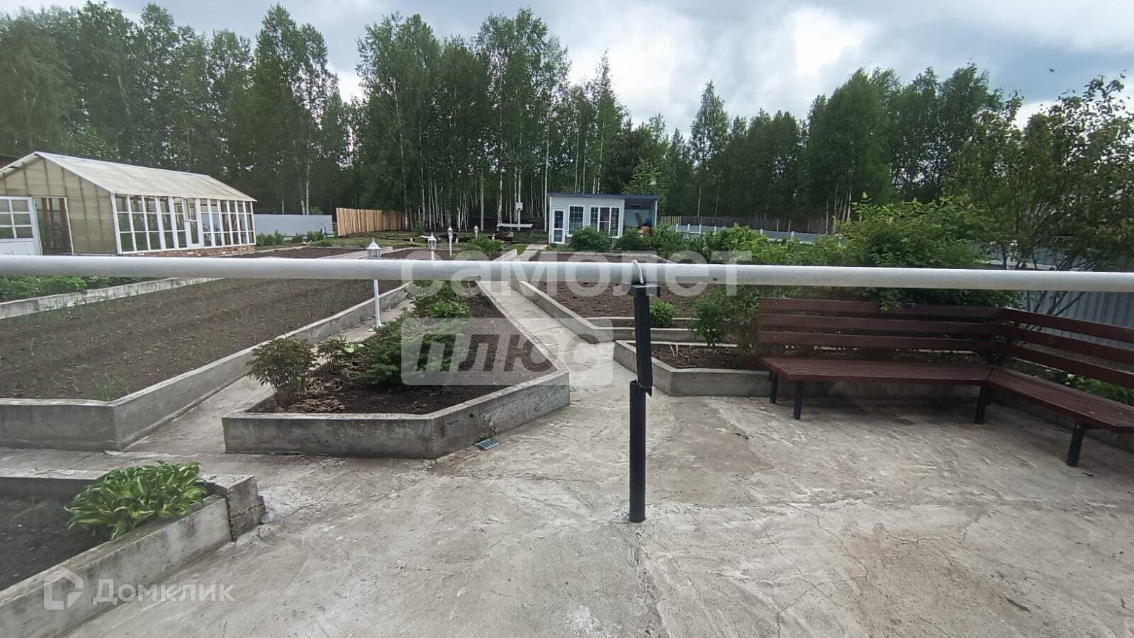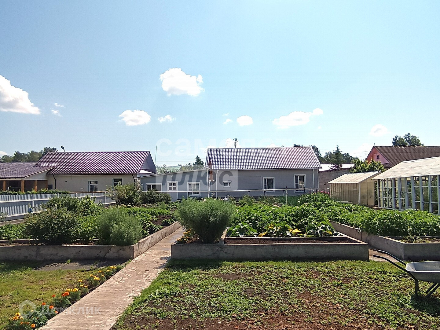 На участке оборудованы: зона отдыха, две сварные теплицы на бетонном основании (одна из алюминия), система полива, освещение, зона отдыха рядом с домом, отдельно на участке оборудована сушилка для белья в домике с кладовкой (может использоваться как беседка)
