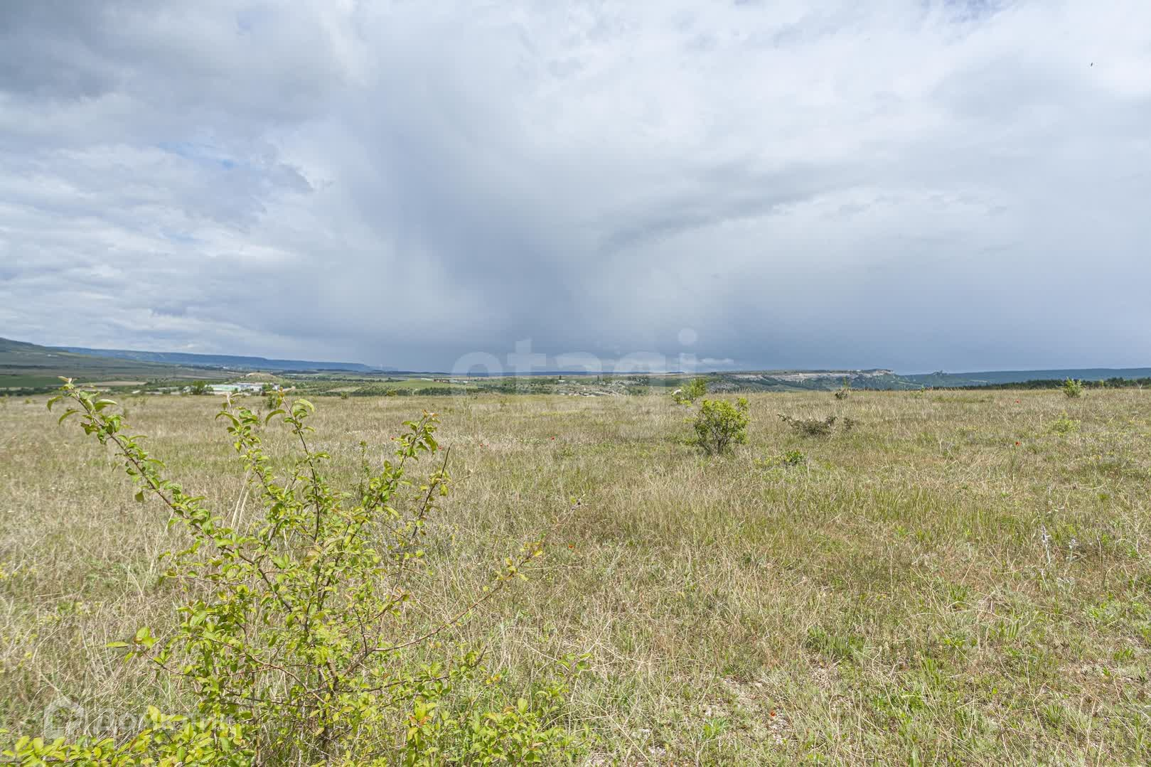 Участок два гектара как и два соседних. Продаются все вместе комплексом. Участки находятся на возвышенности, с них открывается очень красивый вид на долину. Свет городской есть на соседних участках, пишется заявление в Крымэнерго и его доведут до Вас. Вода - пока привозная из Красного Мака.