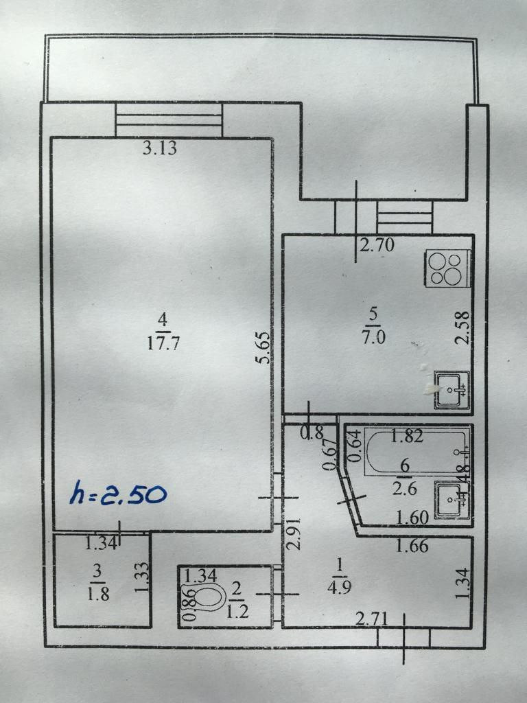 Высота потолков 2.5 м
