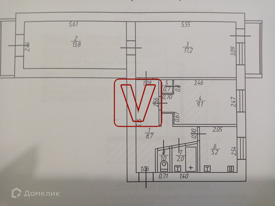 Общая площадь 57.7 м2