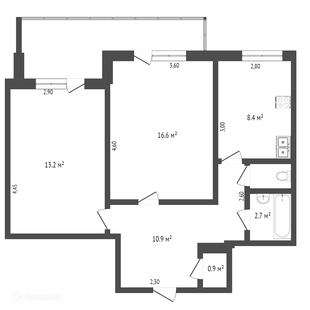 Общая площадь 59 м2