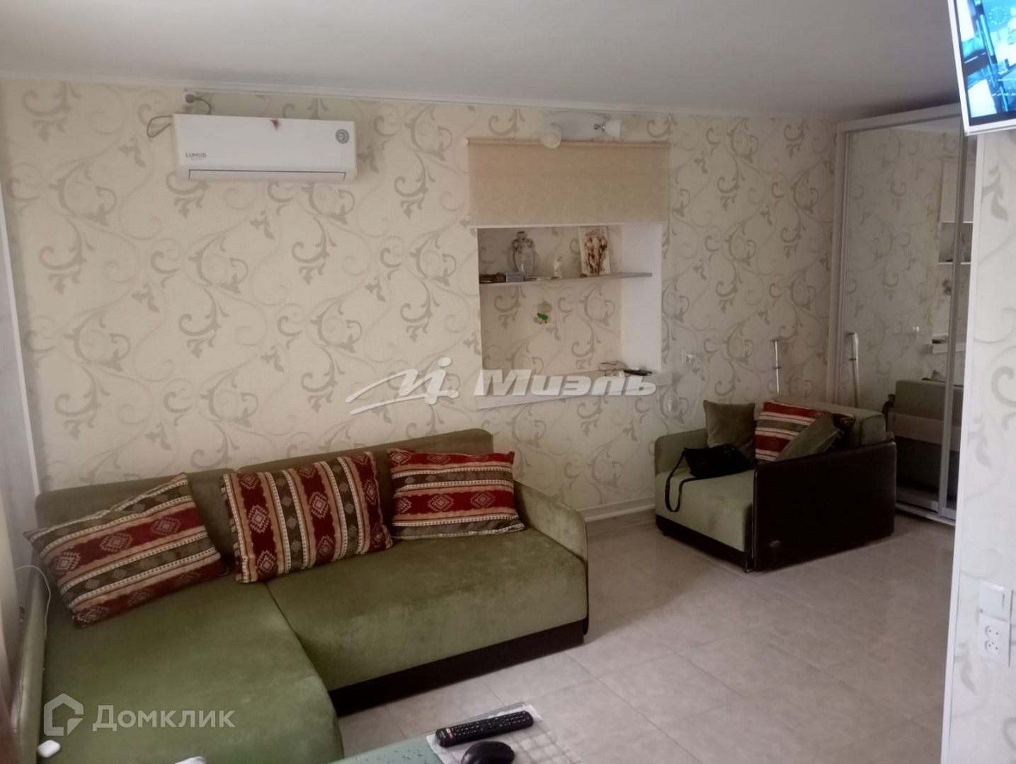 Продается с мебелью и техникой: кухонный гарнитур, электроплита, холодильник, шкаф купе в комнату и шкаф в коридоре, кресло, стол, стулья, водонагреватель, кондиционер зима+лето.