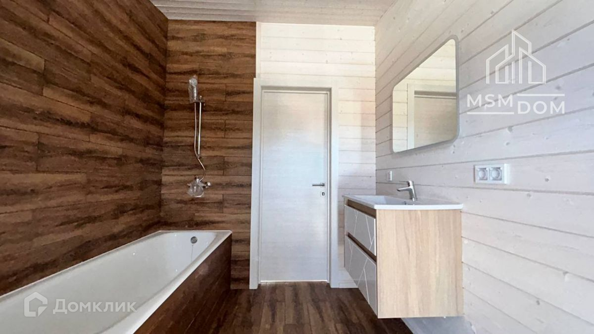 - Ванная комната– плитка в сочетании с имитацией бруса