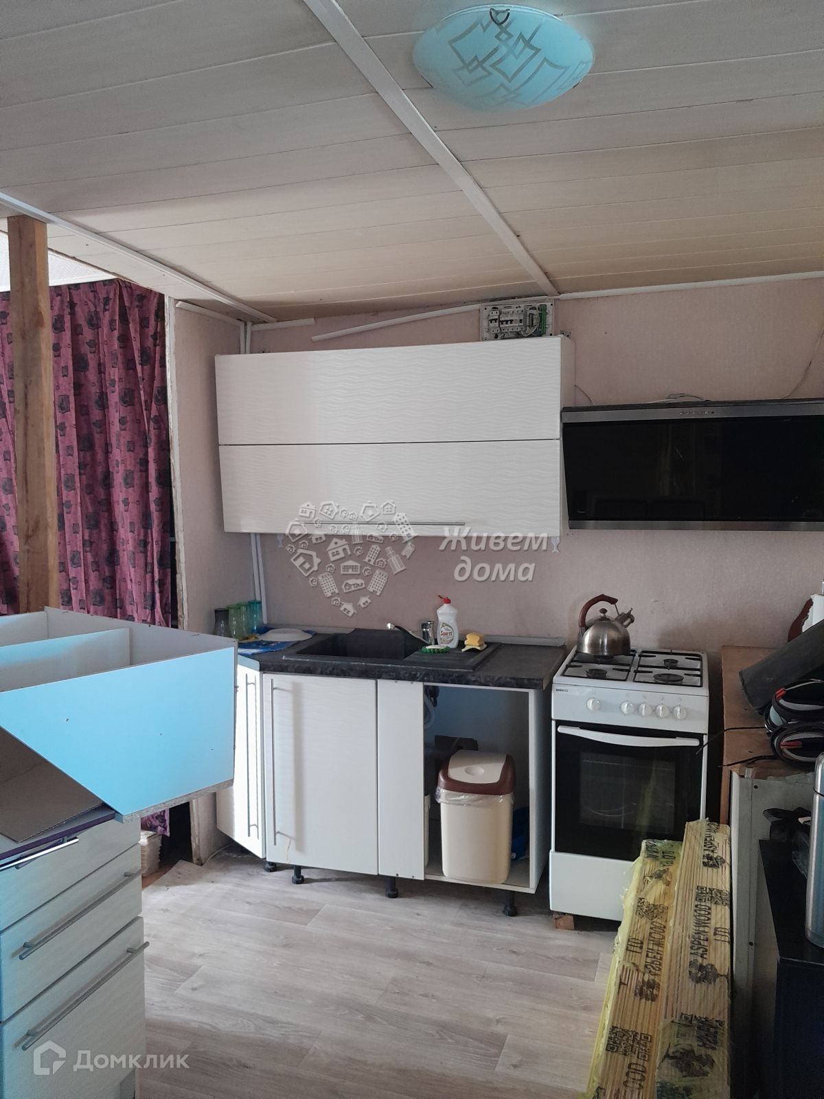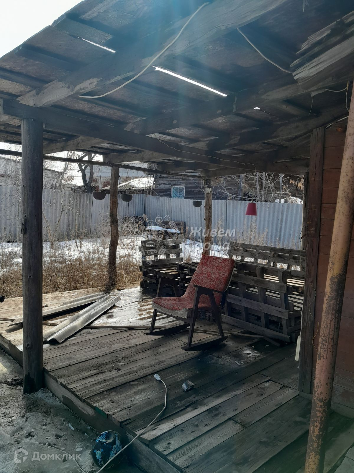 На участке также имеется старый деревянный жилой дом с 2-мя большими комнатами и кухней, туалет и ванна находятся в доме - водонагреватель.