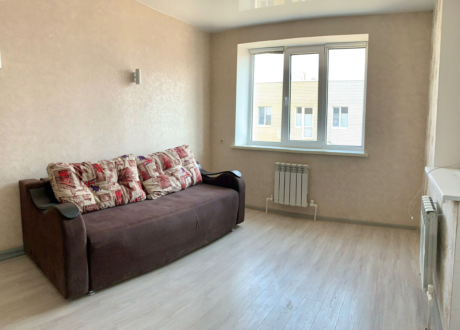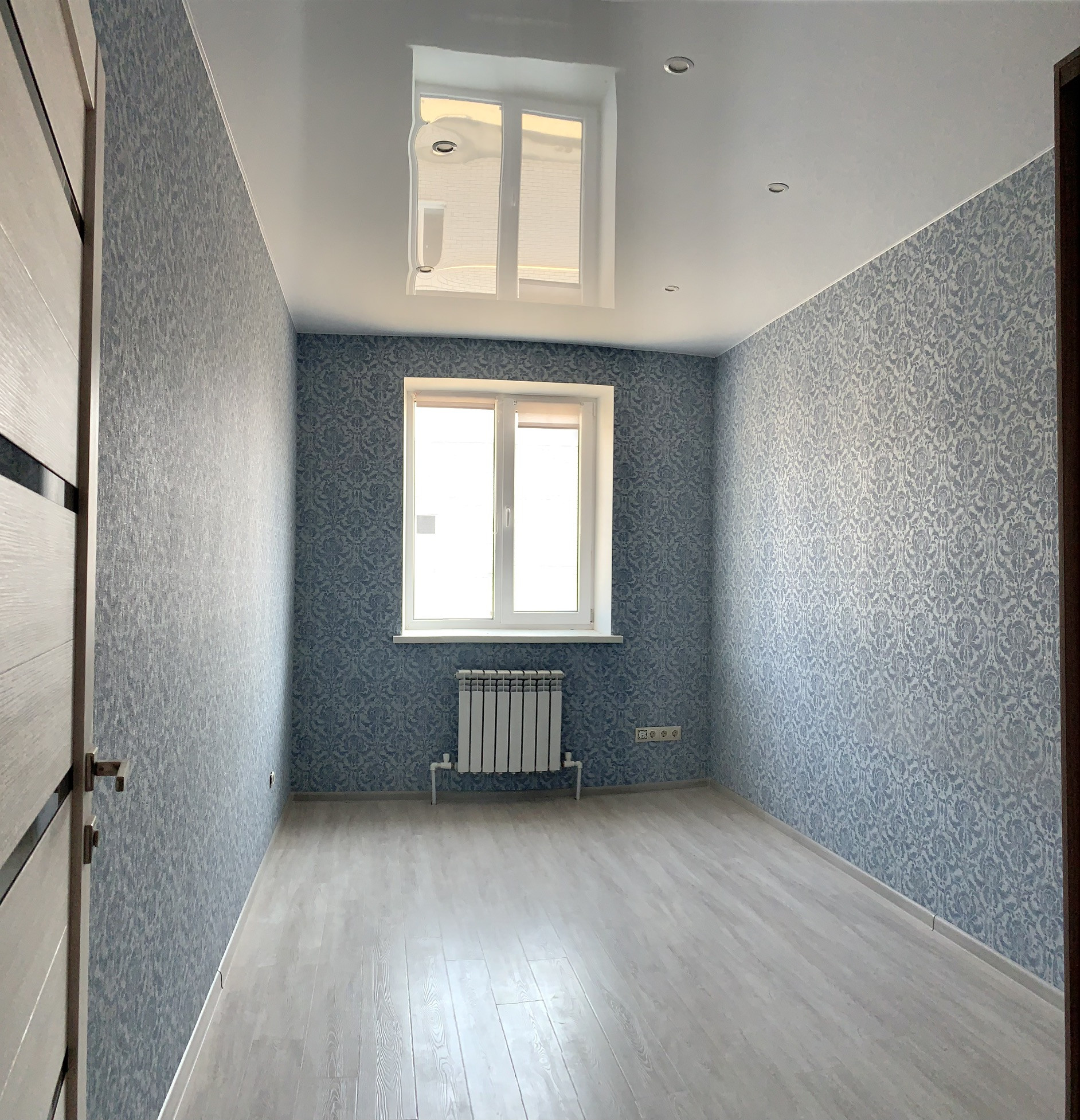 В квартире выполнен современный ремонт. На полу выложен новый ламинат, установлены межкомнатные двери, натяжные потолки. Состояние отличное. Заходи и живи!