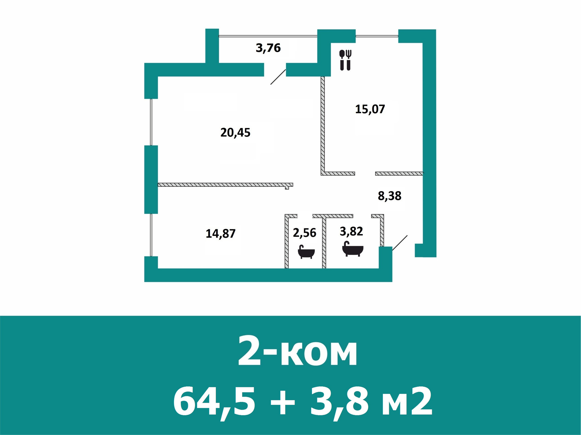 — общая площадь 64,5 кв.м;