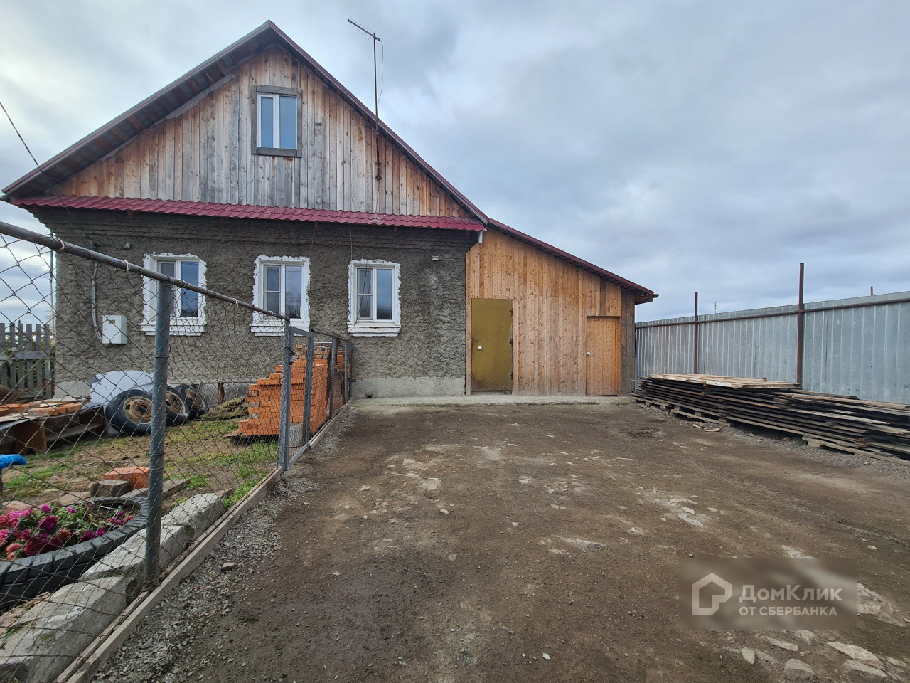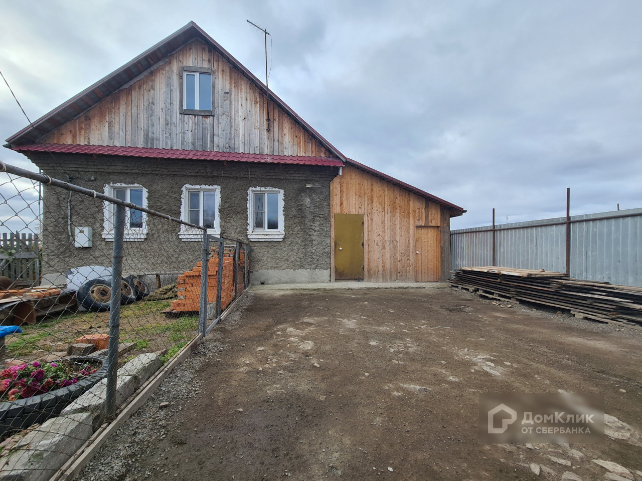 Дом шлакоблочный, обложенный кирпичом.
