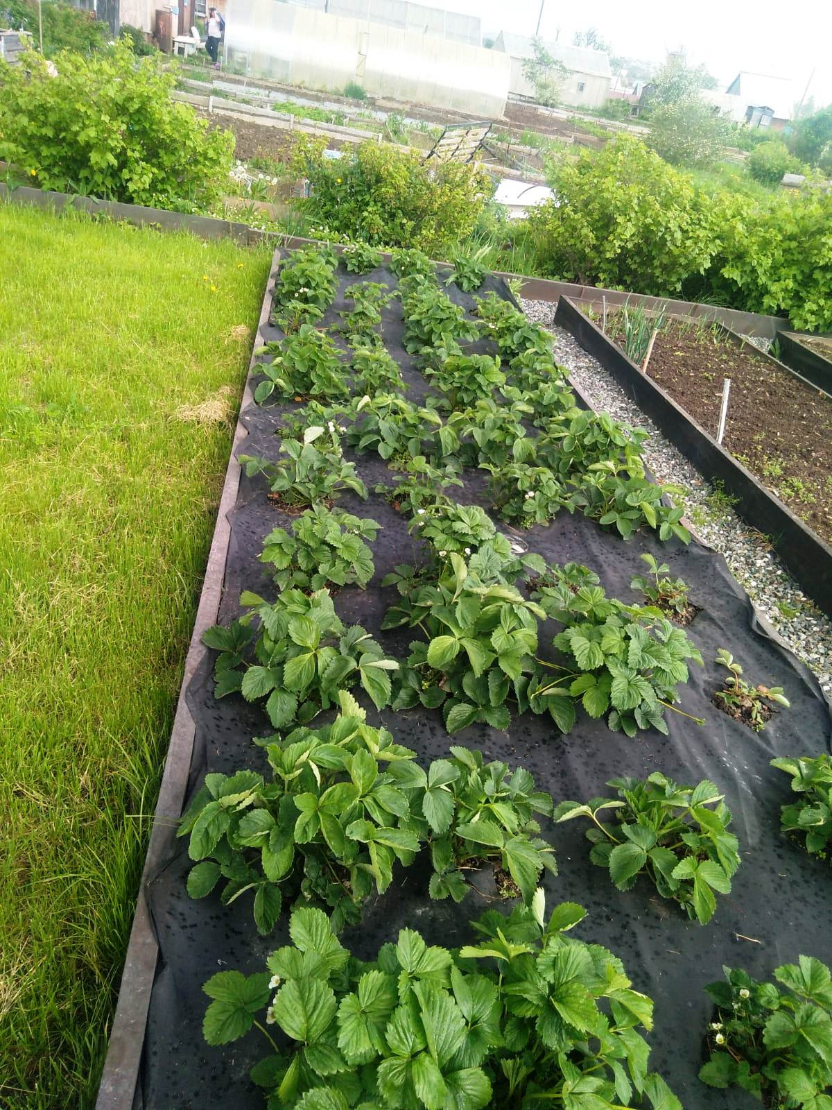 Участок ровный, солнечный, вкусная, крупная клубника.