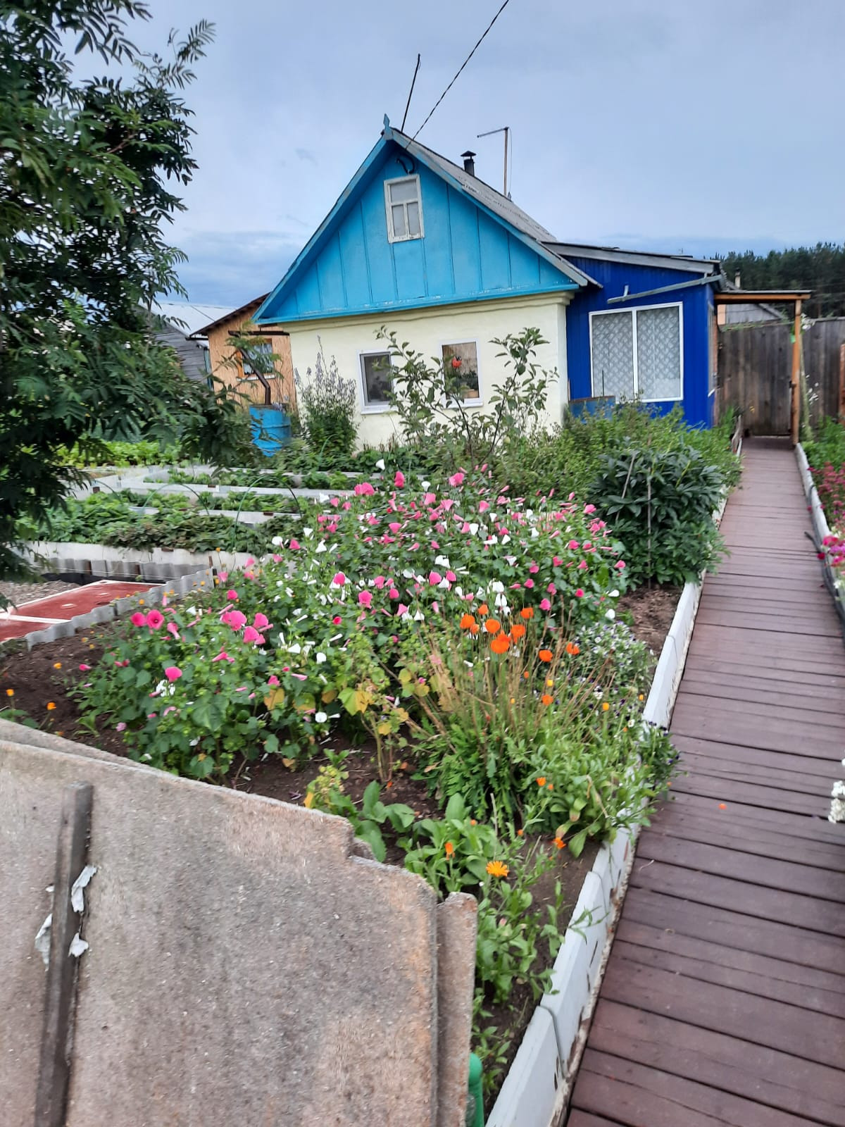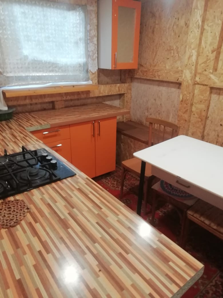 Имеется одноэтажный дом с верандой (шлакоблок), дом теплый, баня, 2 теплицы (одна капитальная, вторая планировалась под зону отдыха и сарай), скважина, оборудованная стоянка под 2 машины, отдельная кухня, разнообразные кустарники, грядки из плоского шифера, дорожки до и вокруг домика деревянные.